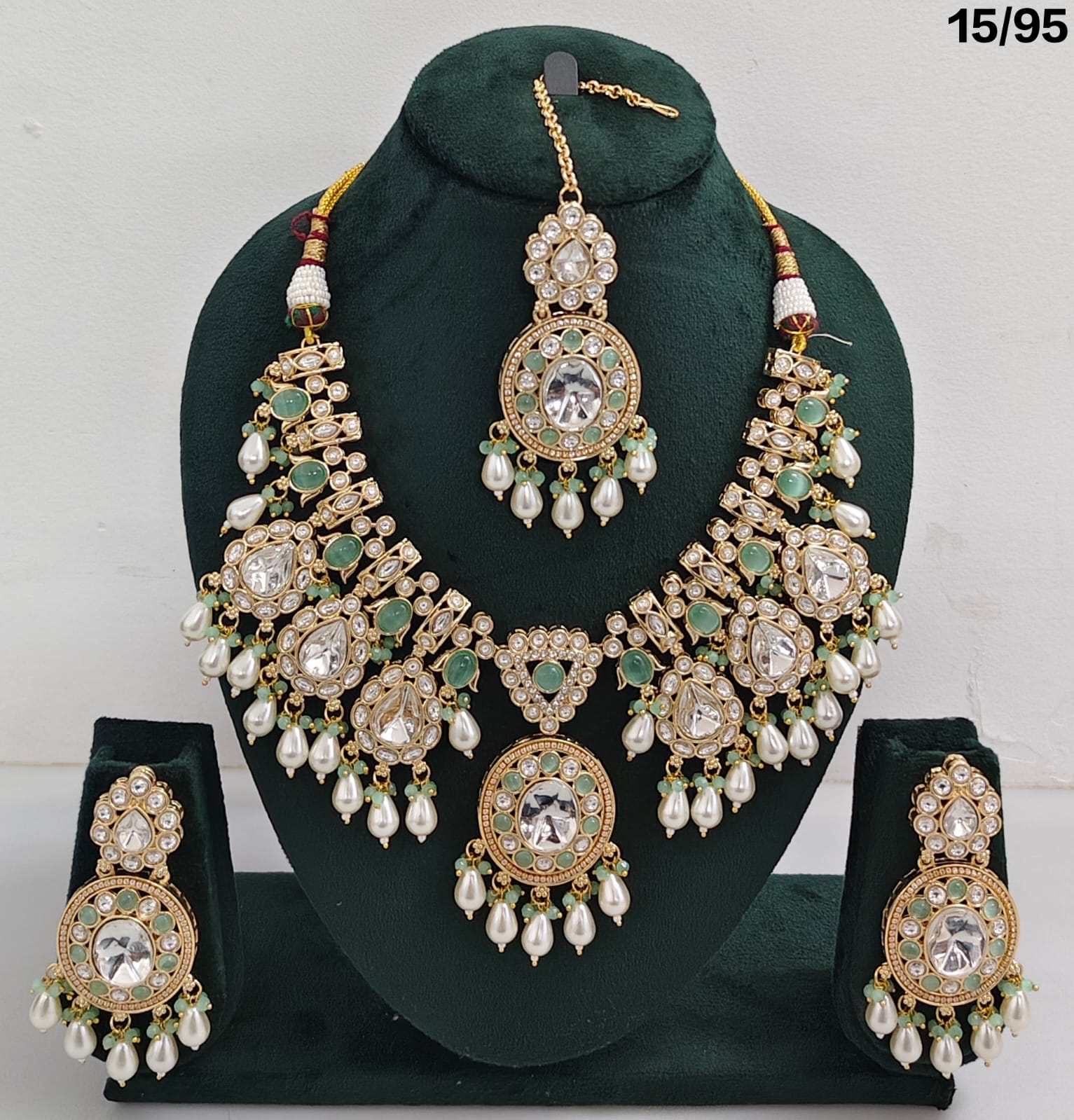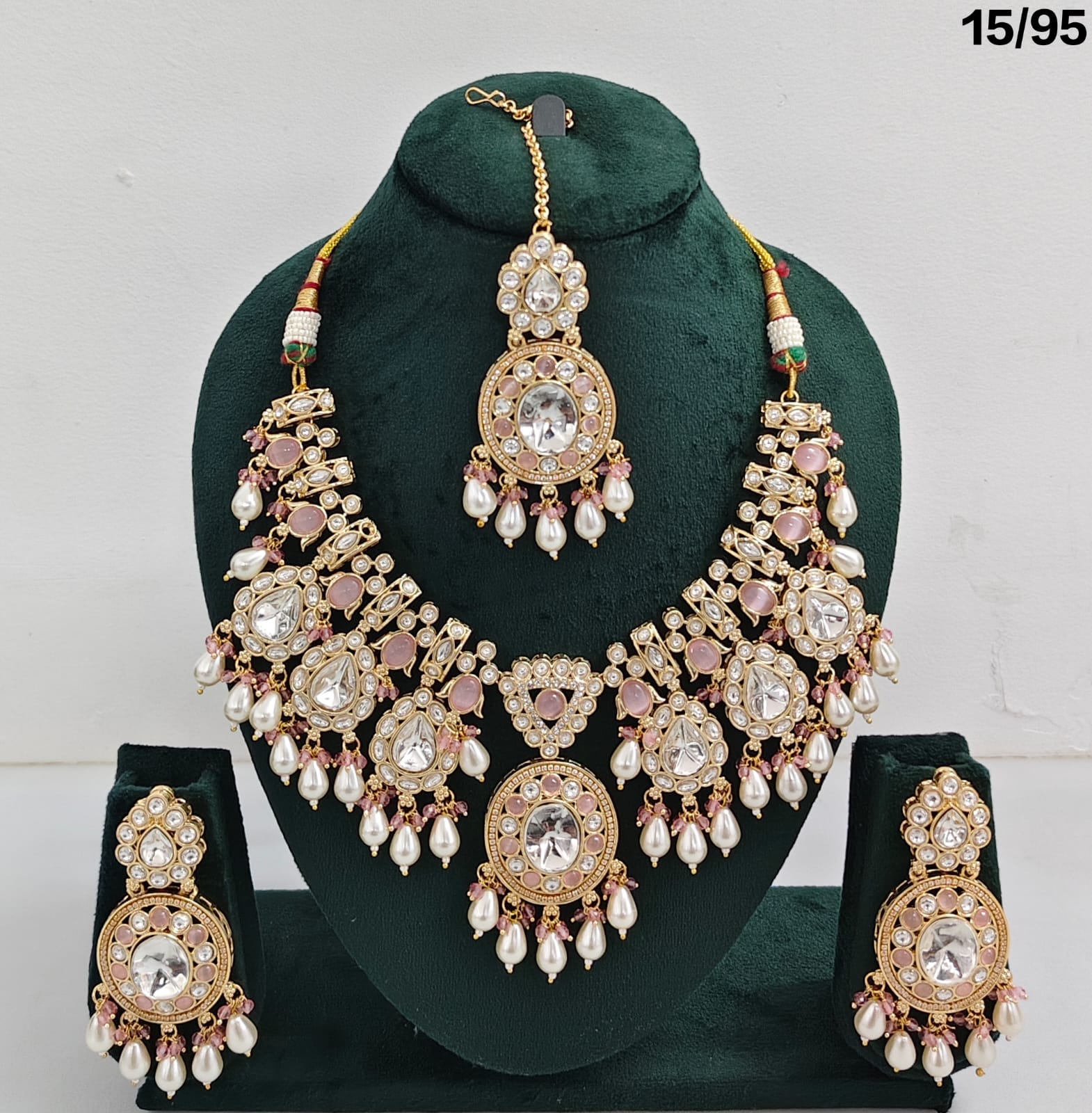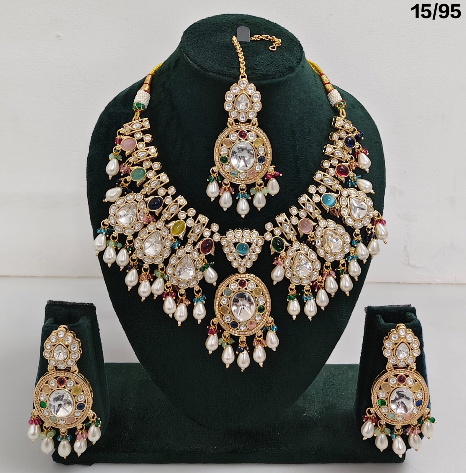 Elegant Craftsmanship – Intricate Kundan stonework with pearl embellishments