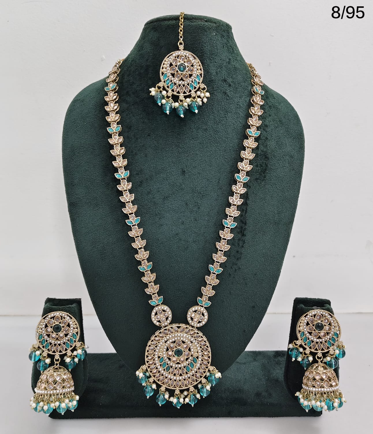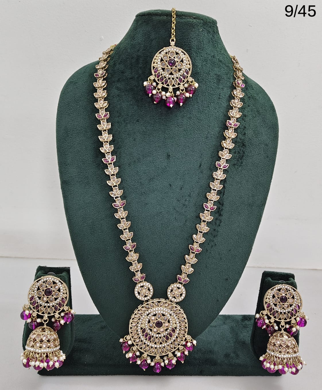 Necklace Set with Jhumka Earrings & Maang Tikka – Traditional Long Set for Wedding & Festive Wear