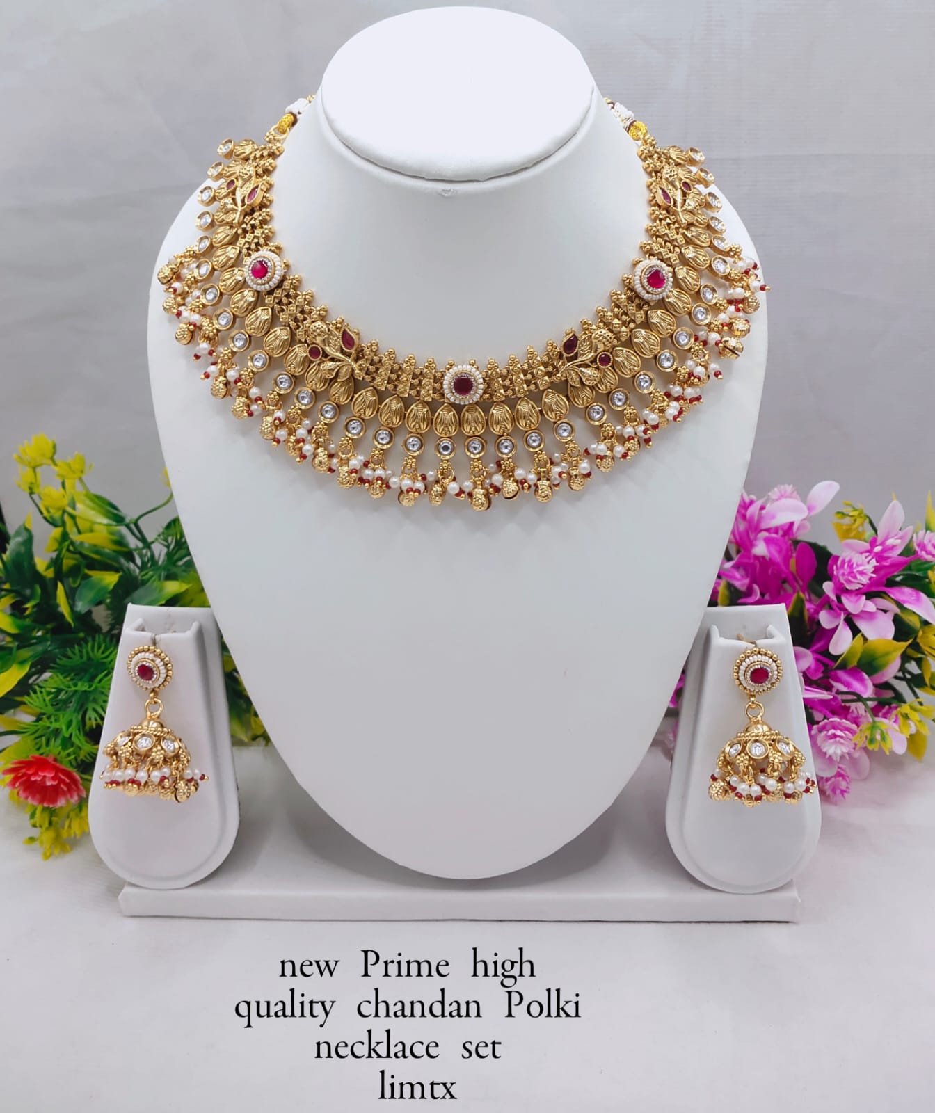 New Prime High-Quality Copper Polki Necklace Set with Earrings | LucenteMarket