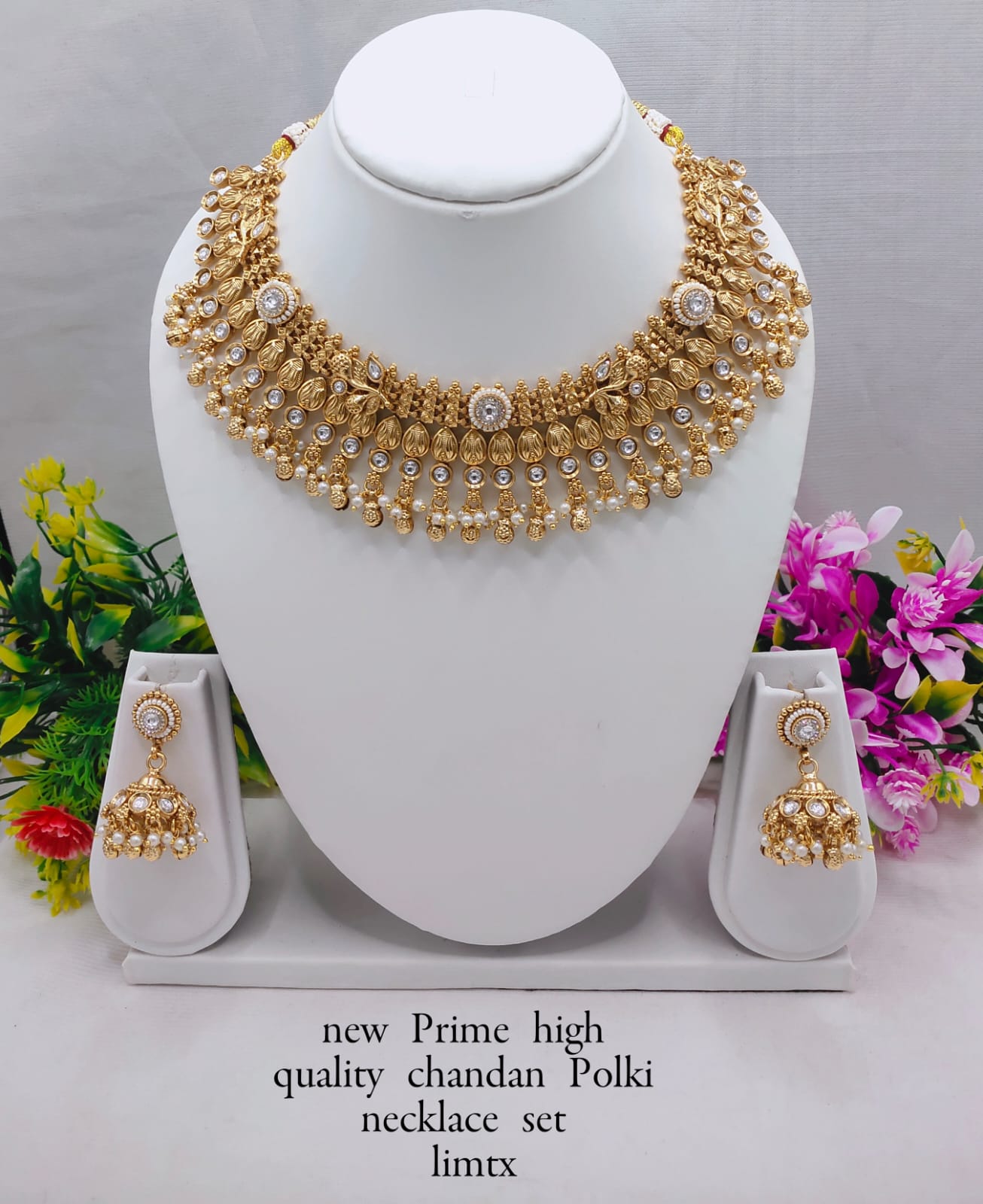 Step into elegance with our New Prime High-Quality Copper Polki Necklace Set, expertly crafted to add a regal touch to your look. This stunning set features a beautifully designed necklace adorned with authentic Polki stones, offering a timeless shine and intricate detailing. Paired with matching earrings, this jewelry set is perfect for weddings, festive occasions, or special celebrations. Elevate your style and make every moment memorable with this exquisite Polki set from LucenteMarket.