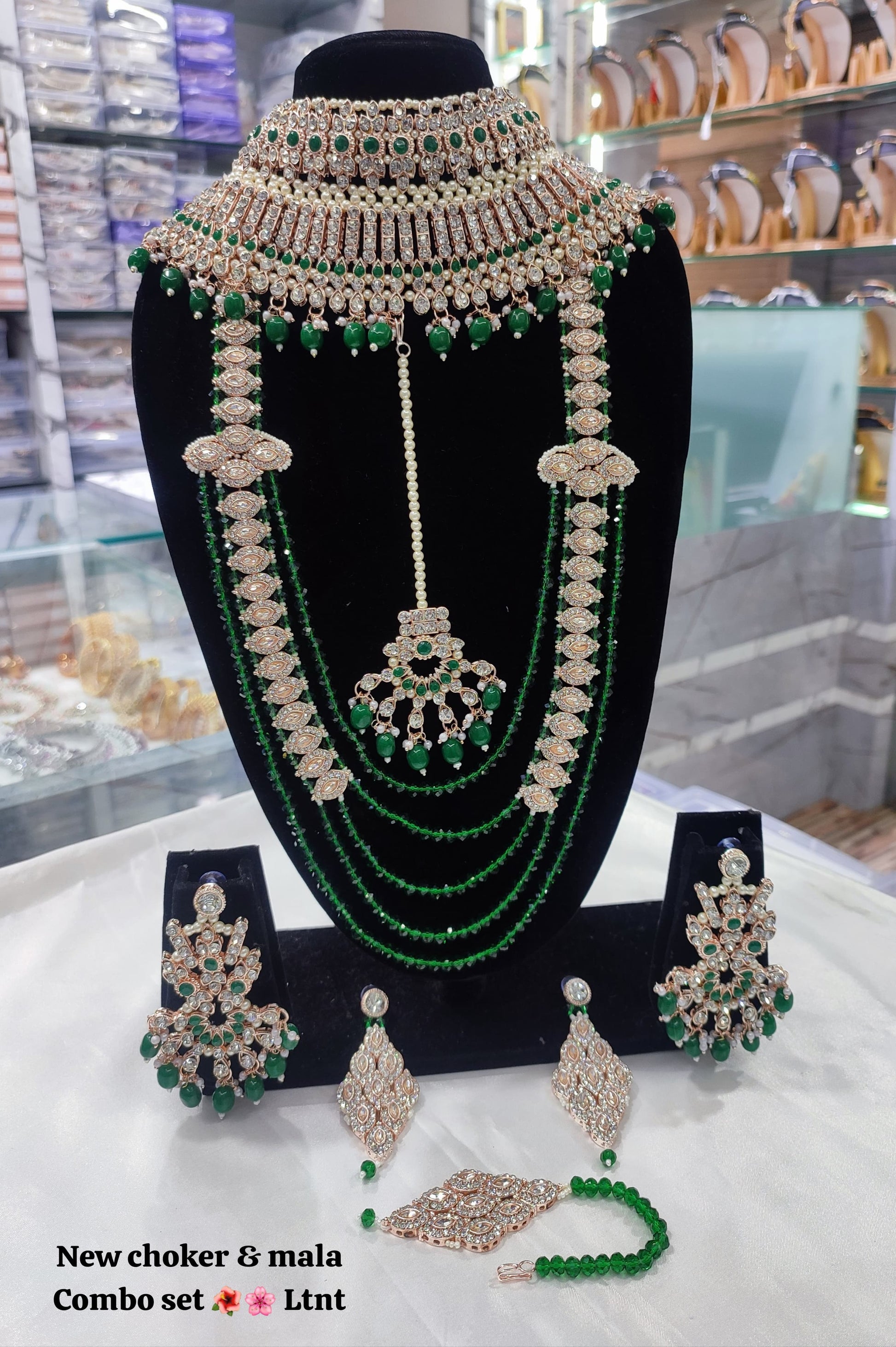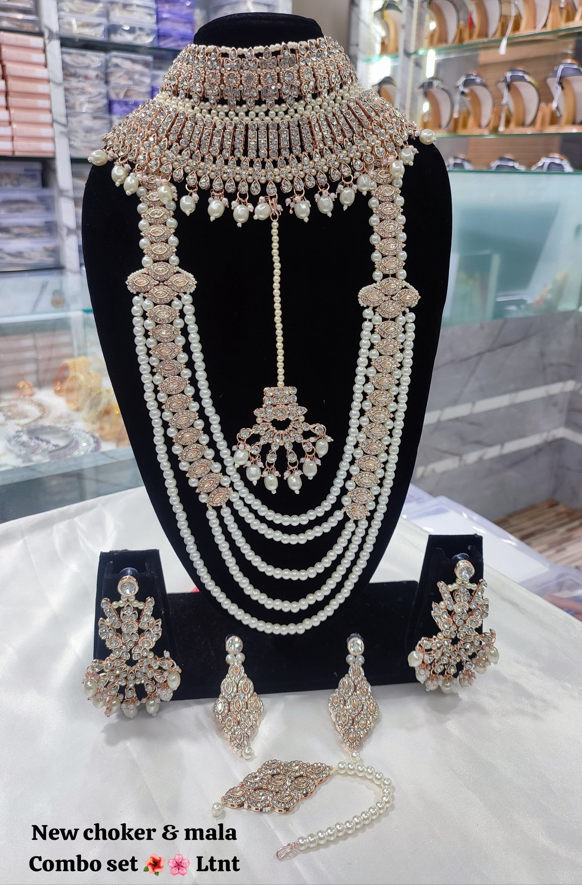 As an expert in the jewelry industry, I present the New Rose Gold Plated Combo Set. This set is expertly crafted with a luxurious rose gold plating that adds a touch of elegance to any outfit. The set includes a necklace, bracelet, and earrings, making it versatile for any occasion. Elevate your style with this stunning combo set.