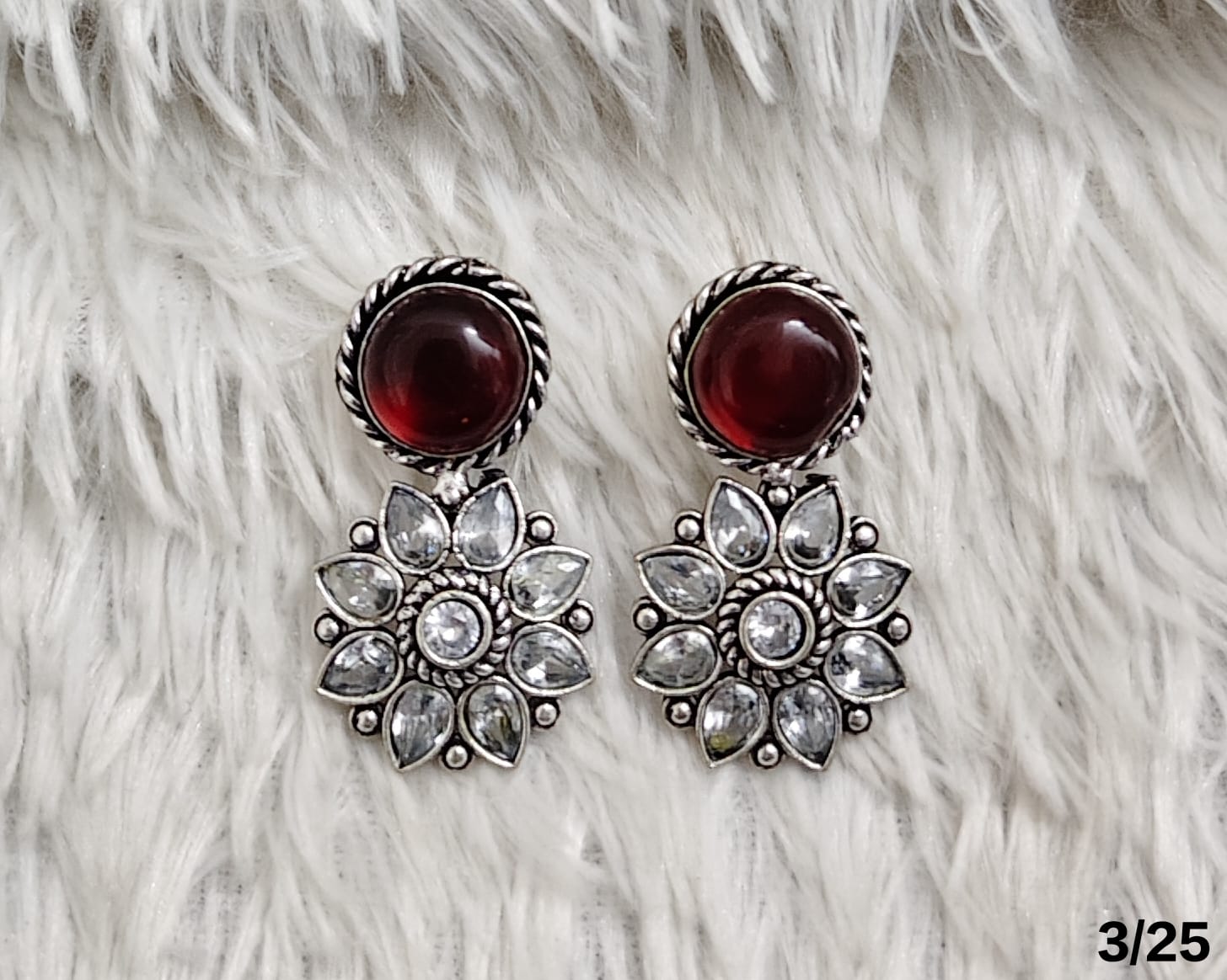 Elevate your ethnic and fusion looks with this beautifully crafted oxidised floral drop earring set. Featuring a classic stud design paired with intricate floral motifs and a central stone, these earrings offer a perfect blend of traditional charm and modern elegance. Lightweight and versatile, they’re ideal for festive occasions, casual outings, or daily wear.