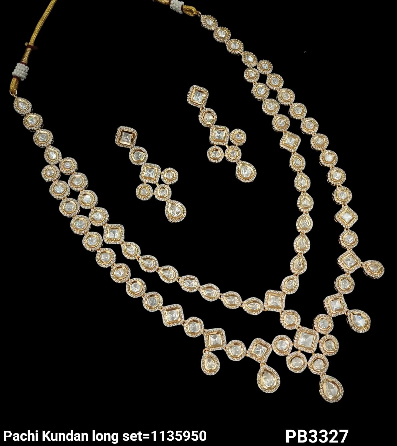 Elevate your elegance with this stunning Pachi Kundan long necklace set. Crafted with intricate kundan stones set in gold-tone, this traditional jewelry set features a beautifully designed long necklace paired with matching earrings. Perfect for weddings, festive occasions, or any special event, this set adds a royal touch to your ensemble. The delicate craftsmanship and timeless design make it a must-have addition to your jewelry collection.