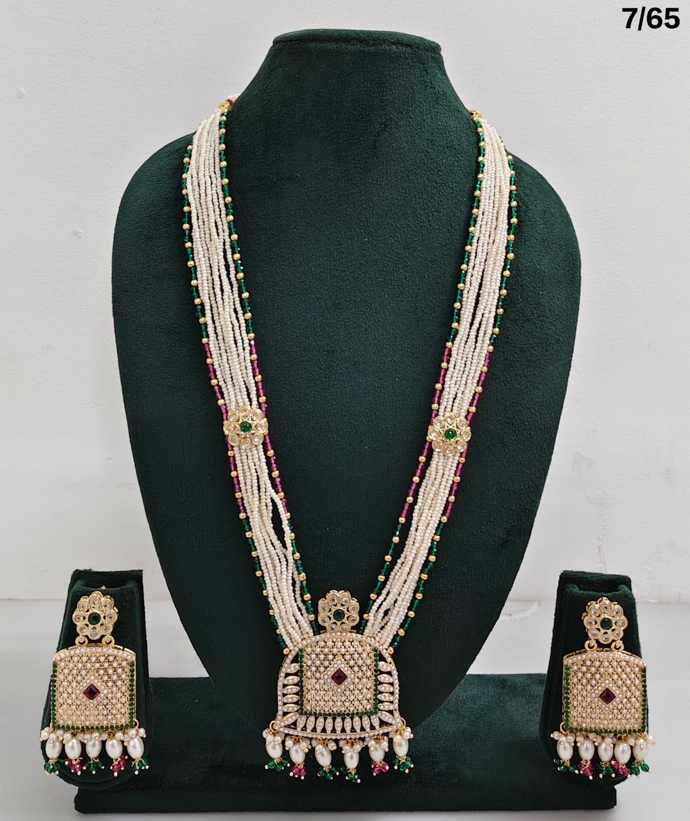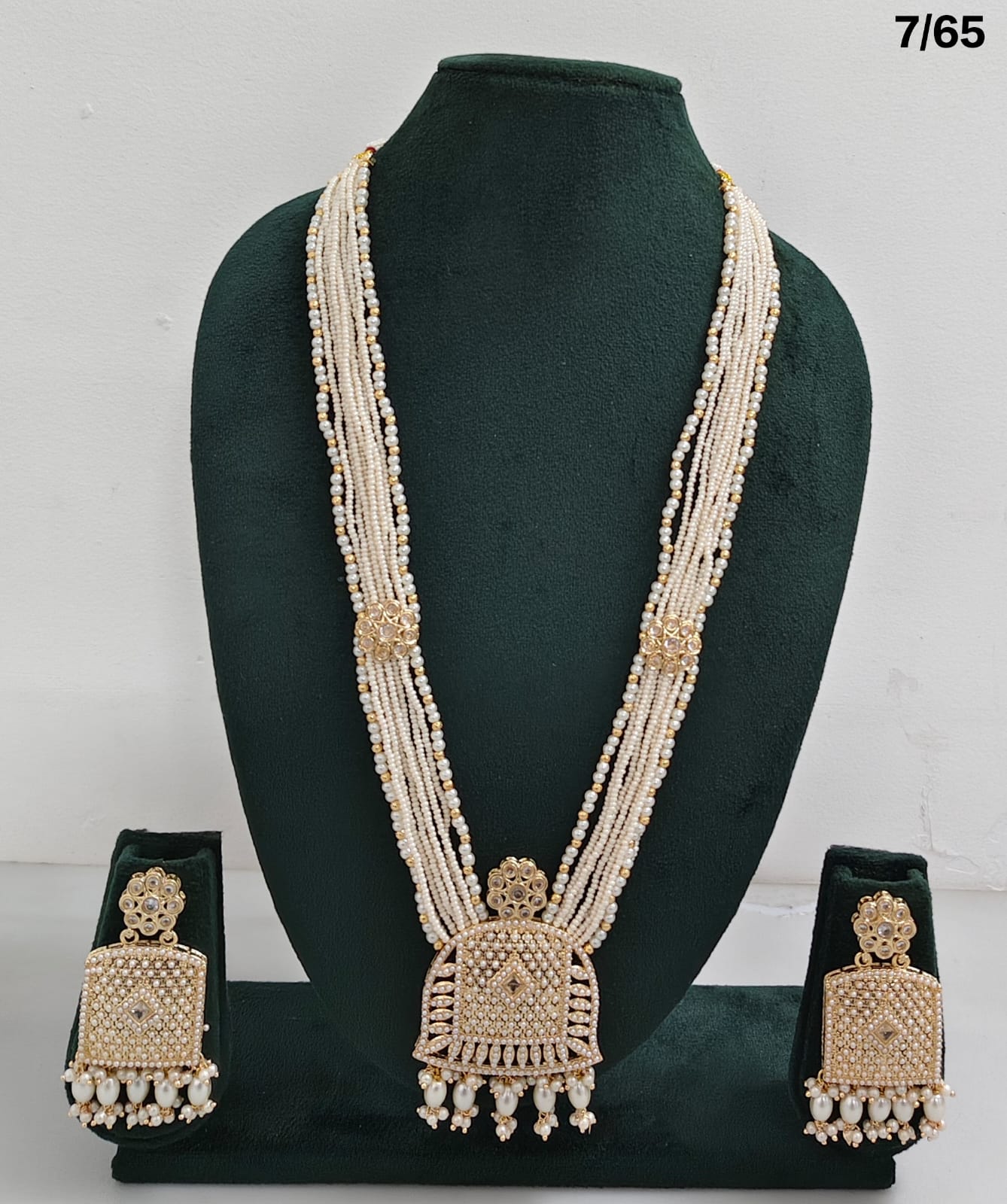 Pearl Beaded Long Necklace Set with CZ Pendant and Matching Earrings – Traditional Ethnic Jewellery