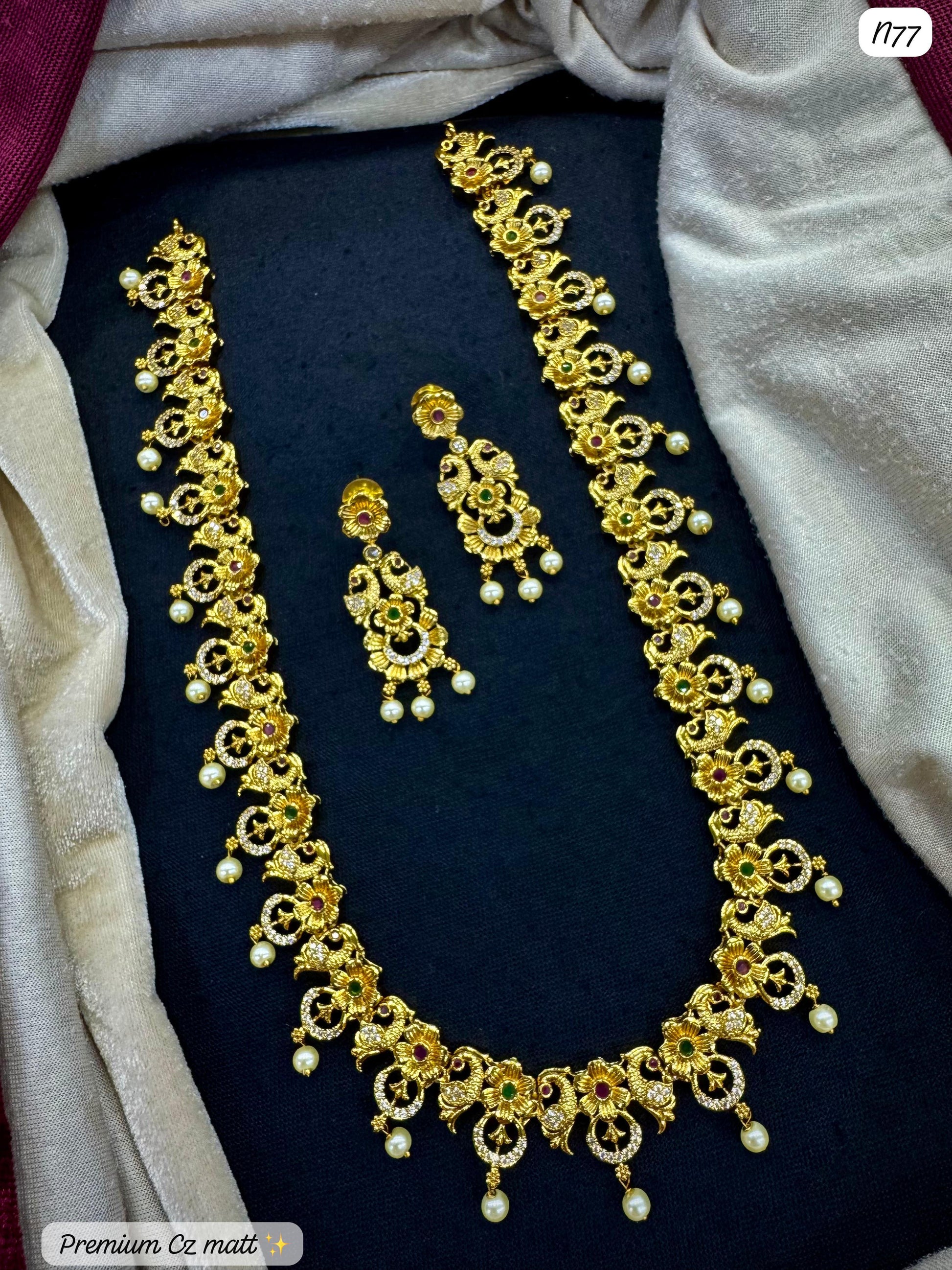 Premium AD Gold Necklace & Earrings Set with Pearl Drops – Lucentemarket