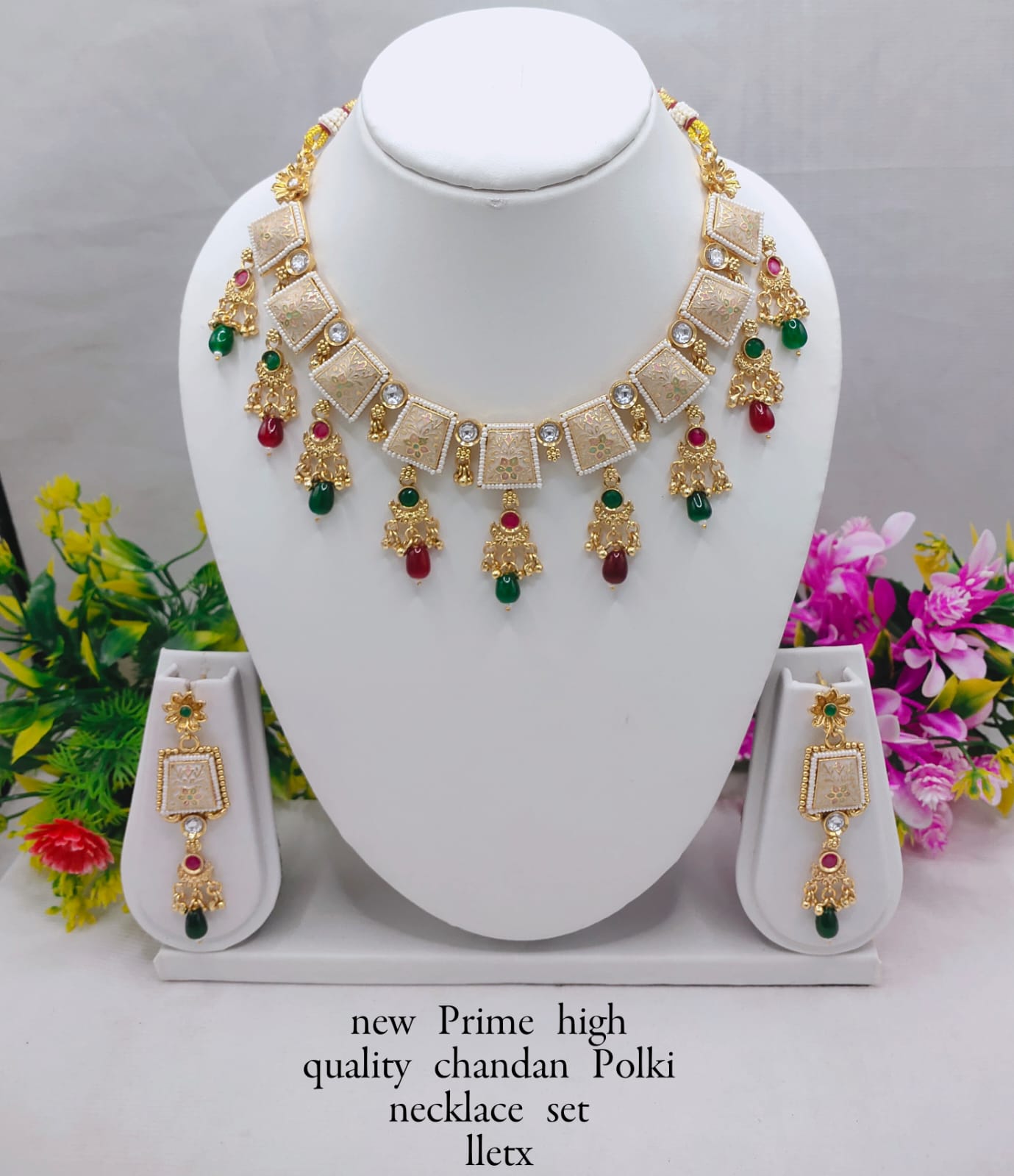 Premium Chandan Polki Necklace Set – Elegant Traditional Jewelry with Matching Earrings