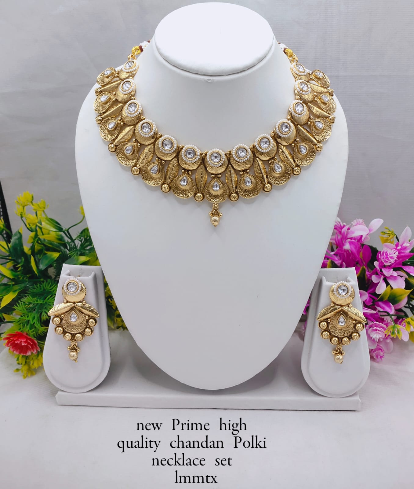 Premium Chandan Polki Necklace Set with Earrings – Bridal & Festive Jewelry