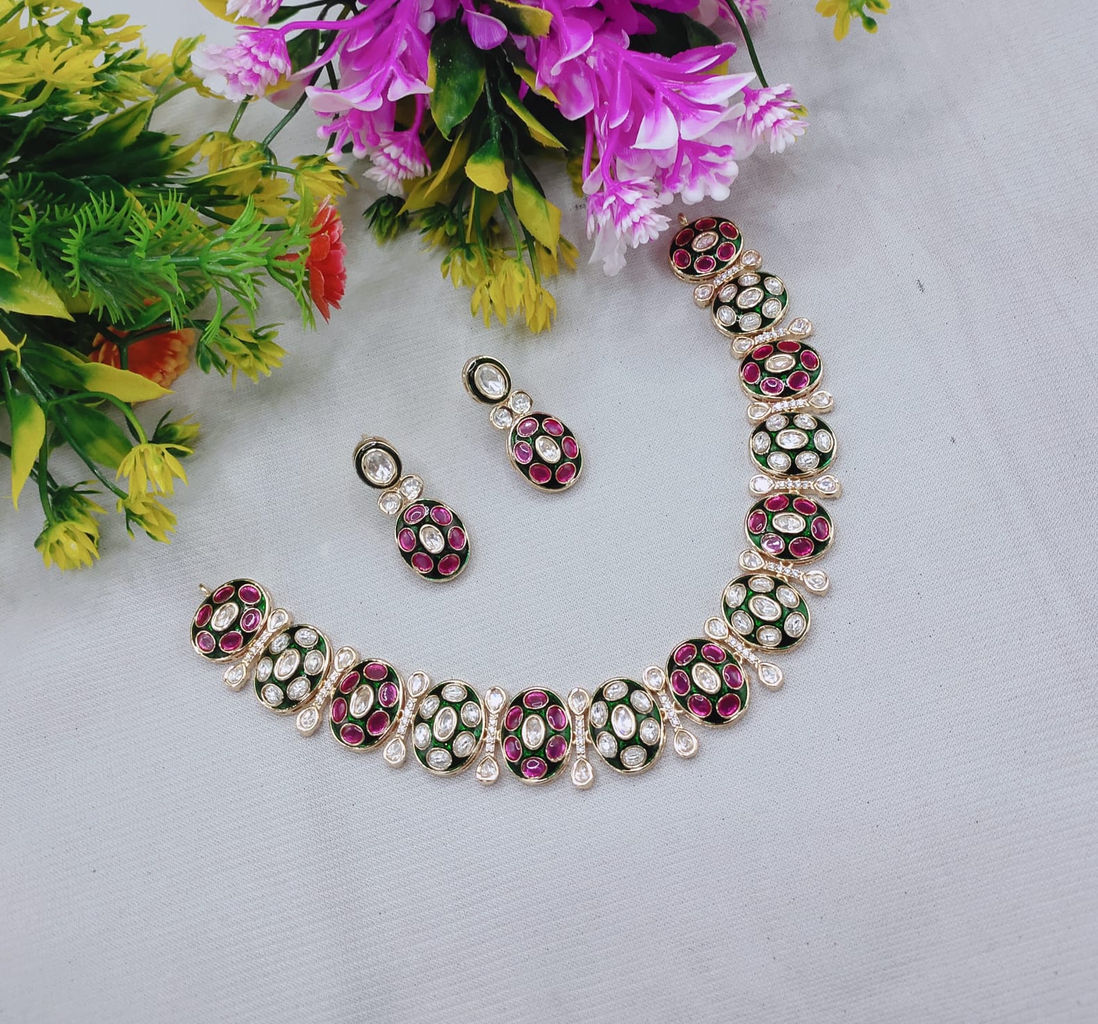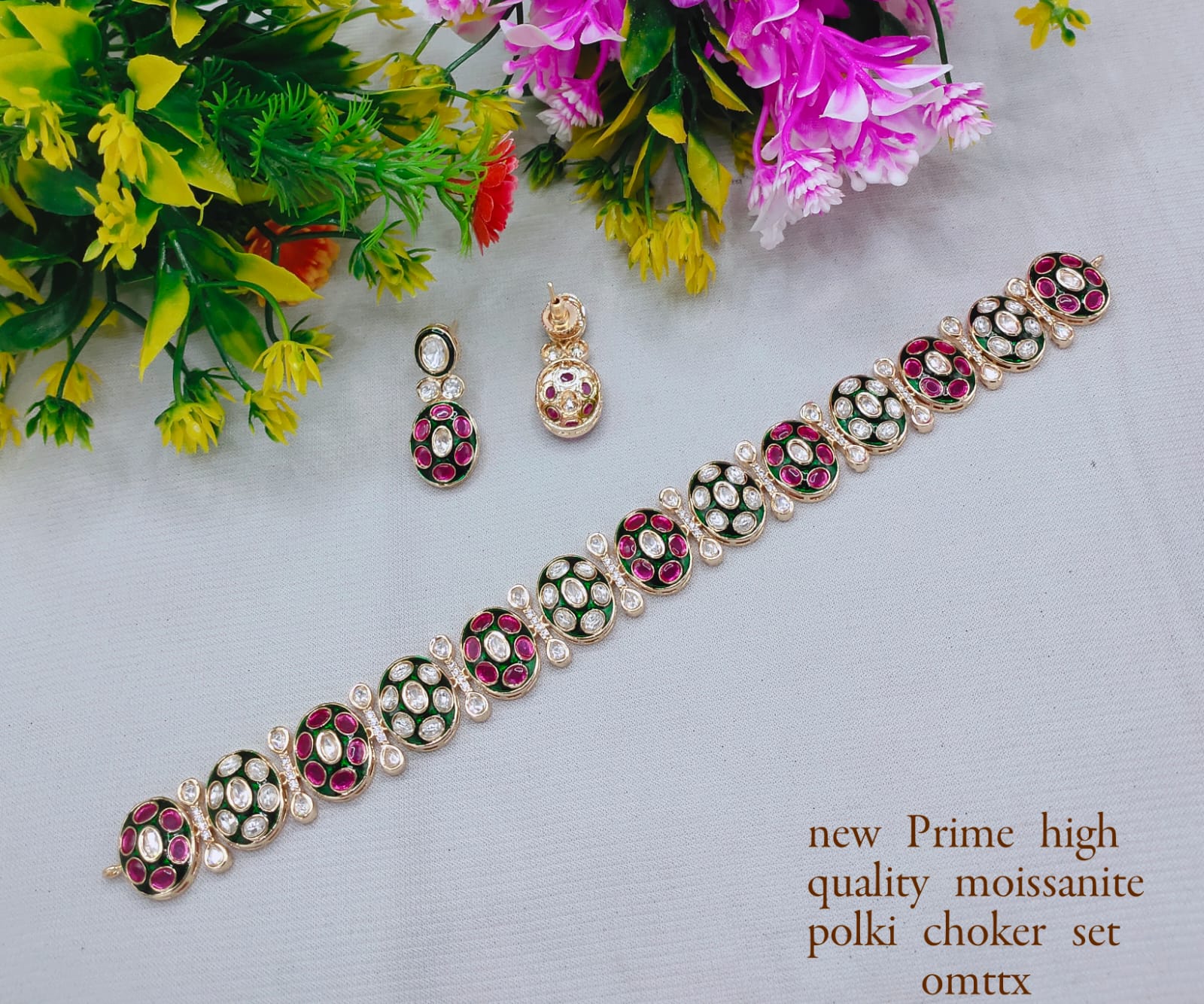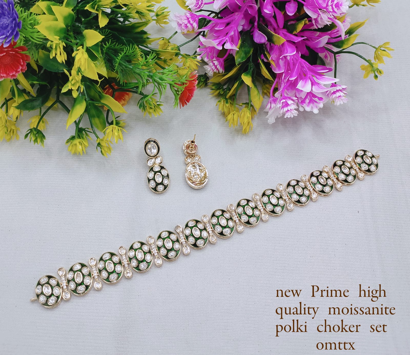 Premium Moissanite Polki Choker & Earring Set – Handcrafted Copper Base Jewelry