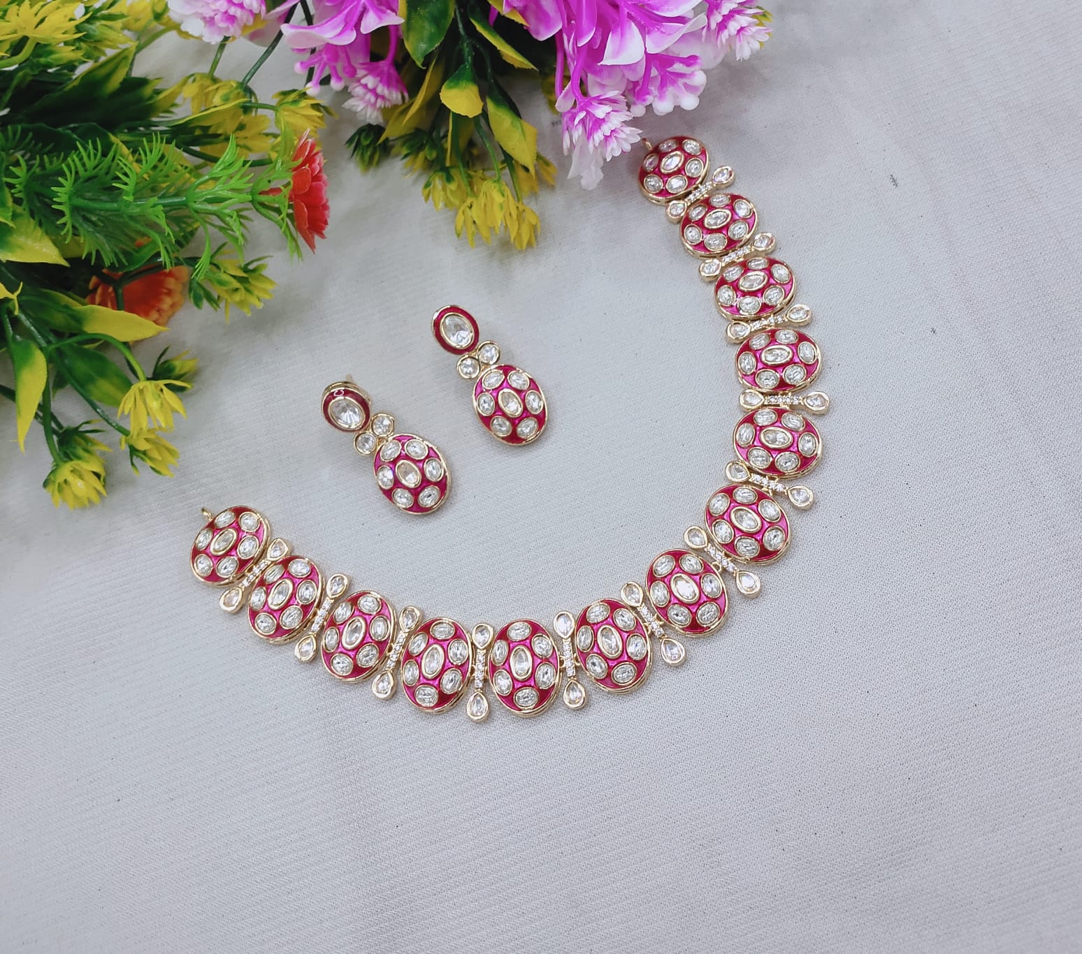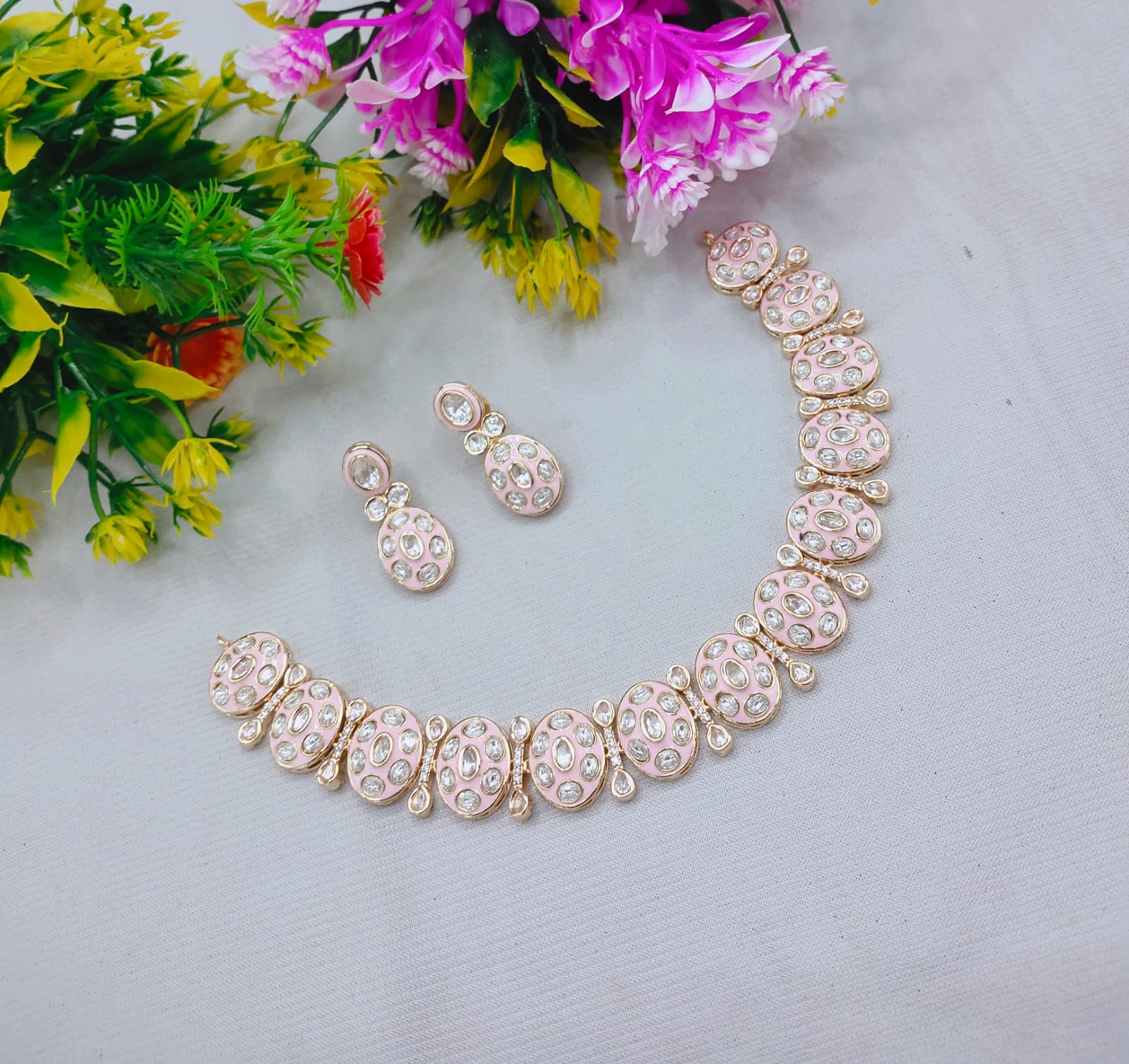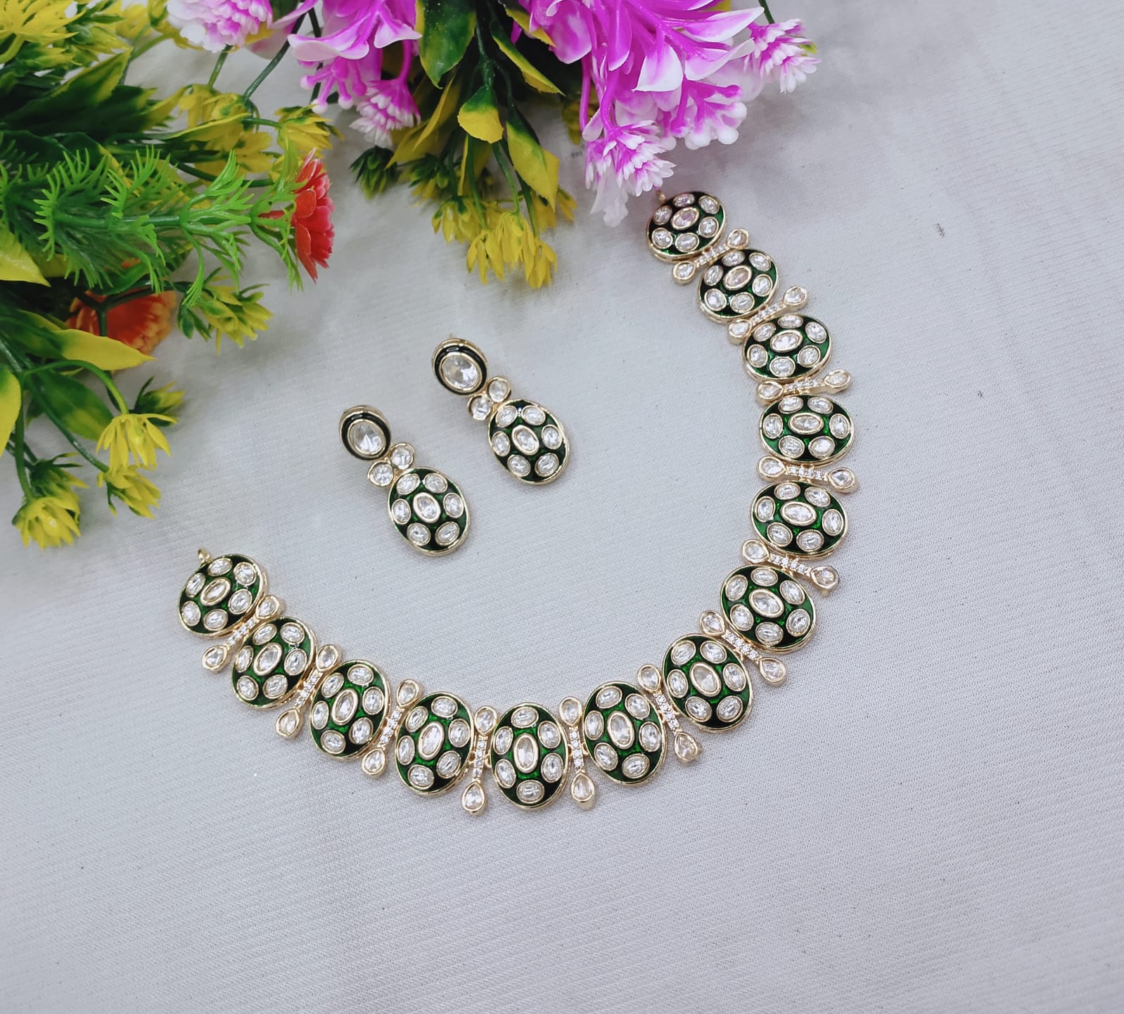 Premium Moissanite Polki Choker & Earring Set – Handcrafted Copper Base Jewelry