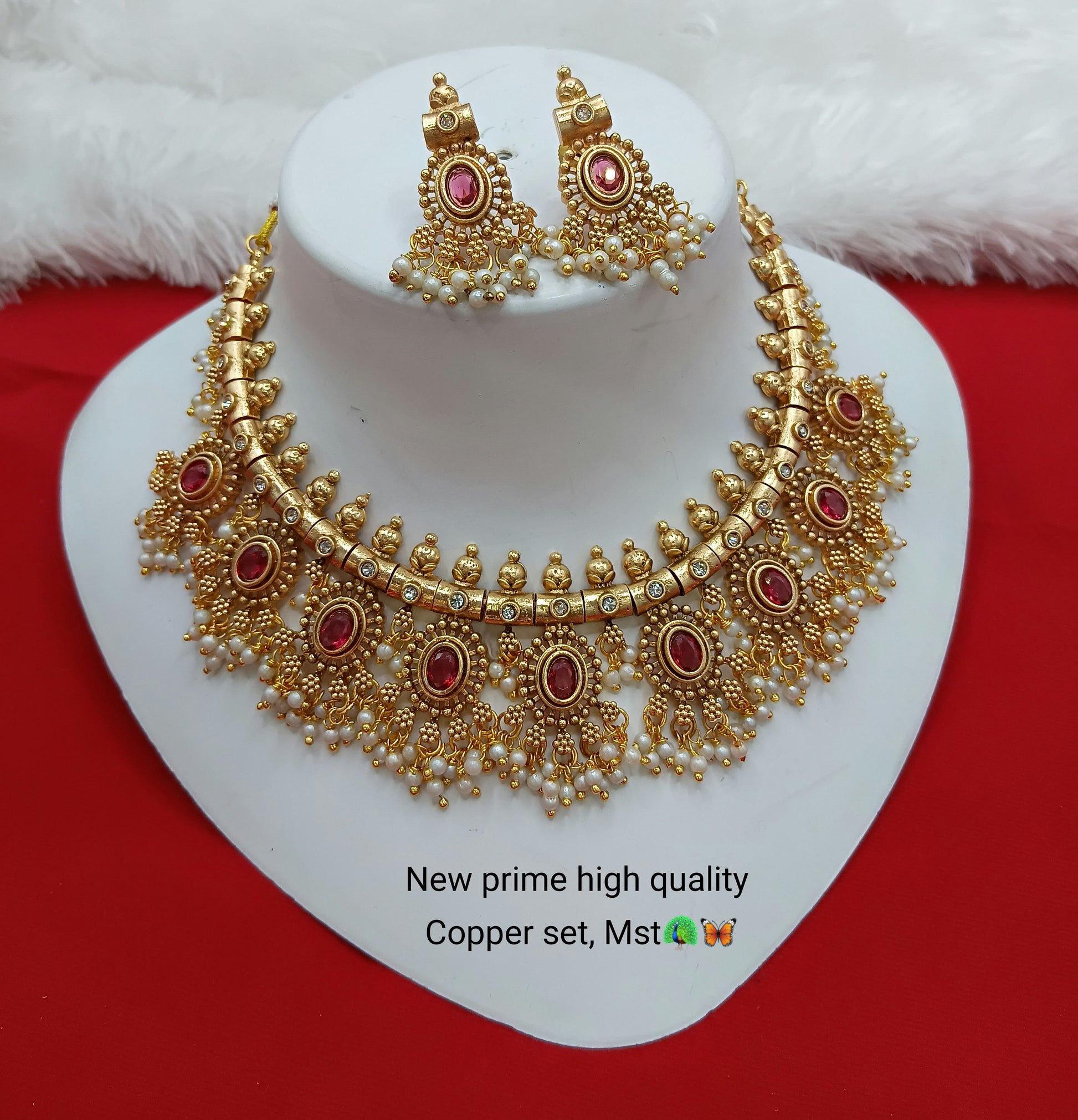 Prime High-Quality Temple Choker Necklace Set with Earrings
