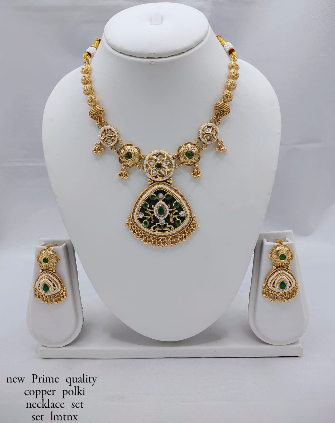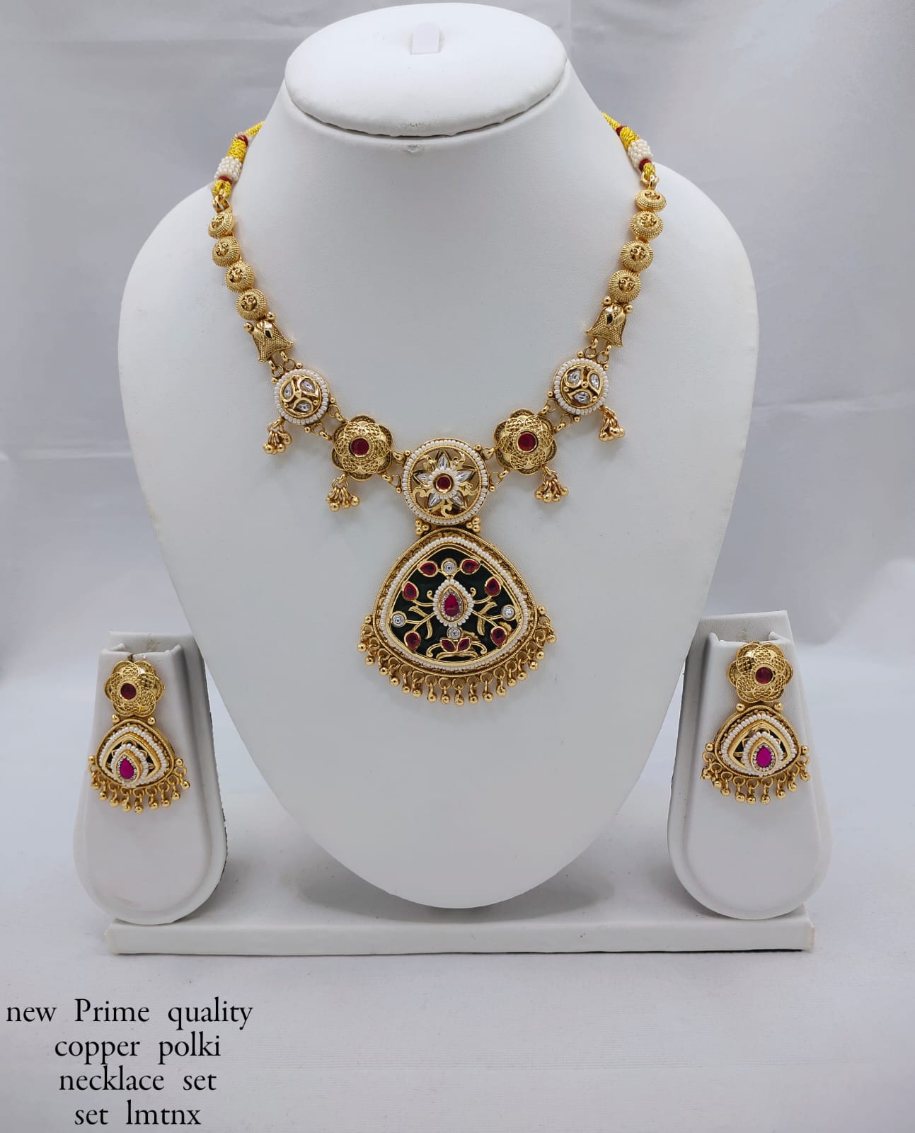 Prime Quality Copper Necklace Set with Traditional Pendant & Matching Earrings