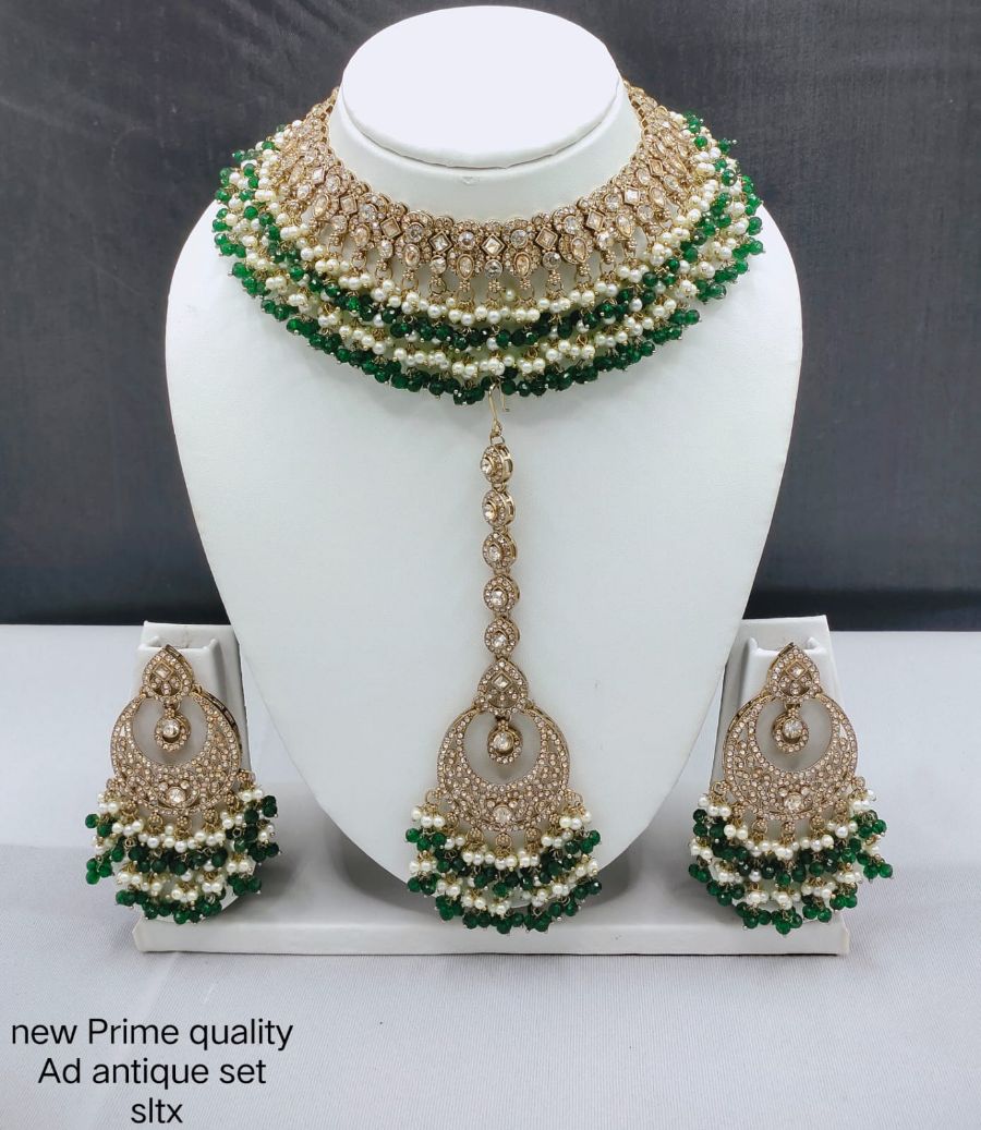Prime Quality Pachi Kundan Antique Necklace and Earrings Set with Beaded Detailing