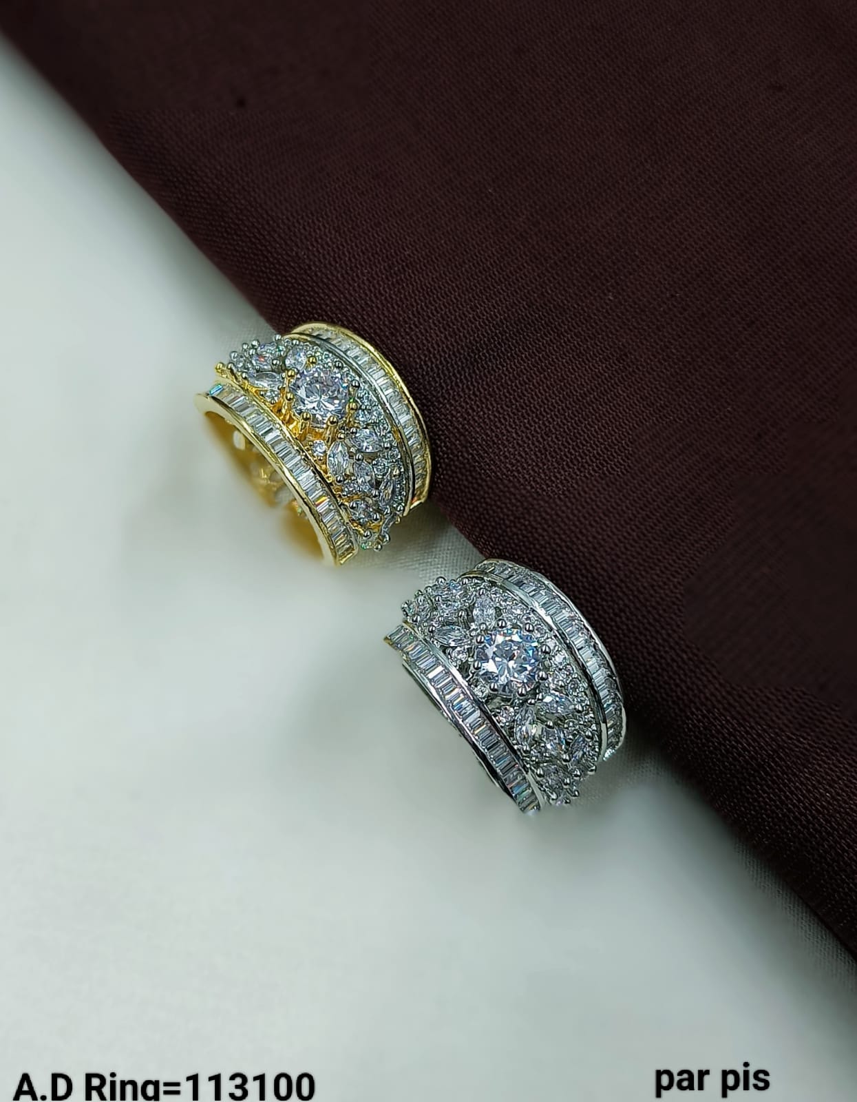 Royal Cluster A.D. Ring with Baguette Accents – Gold & Silver Finish (Per Piece)