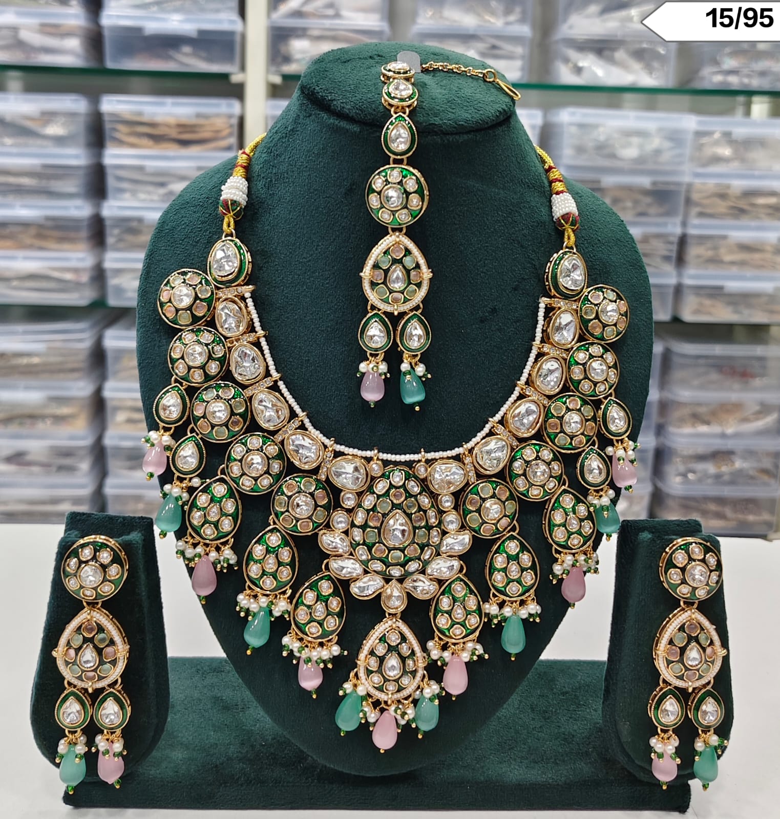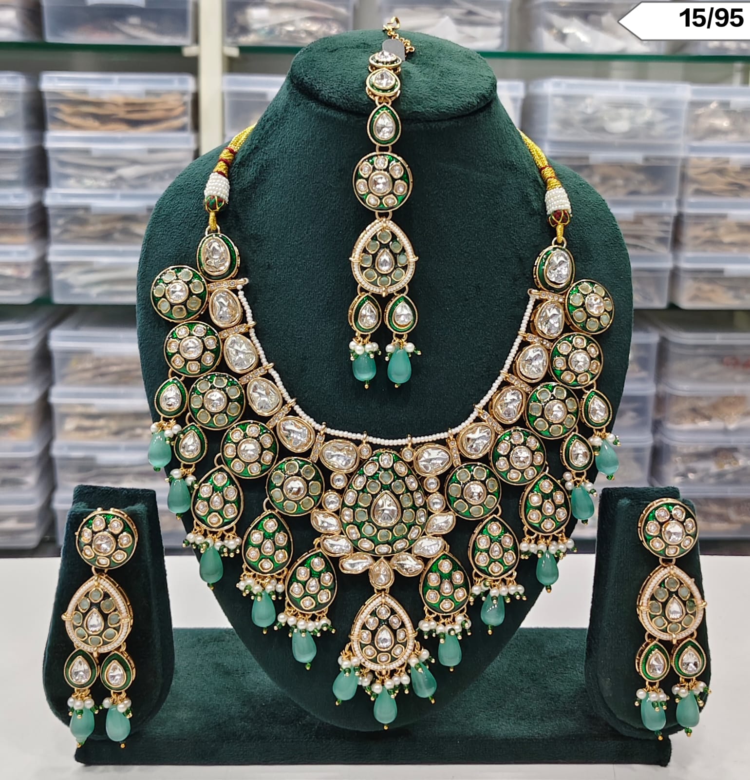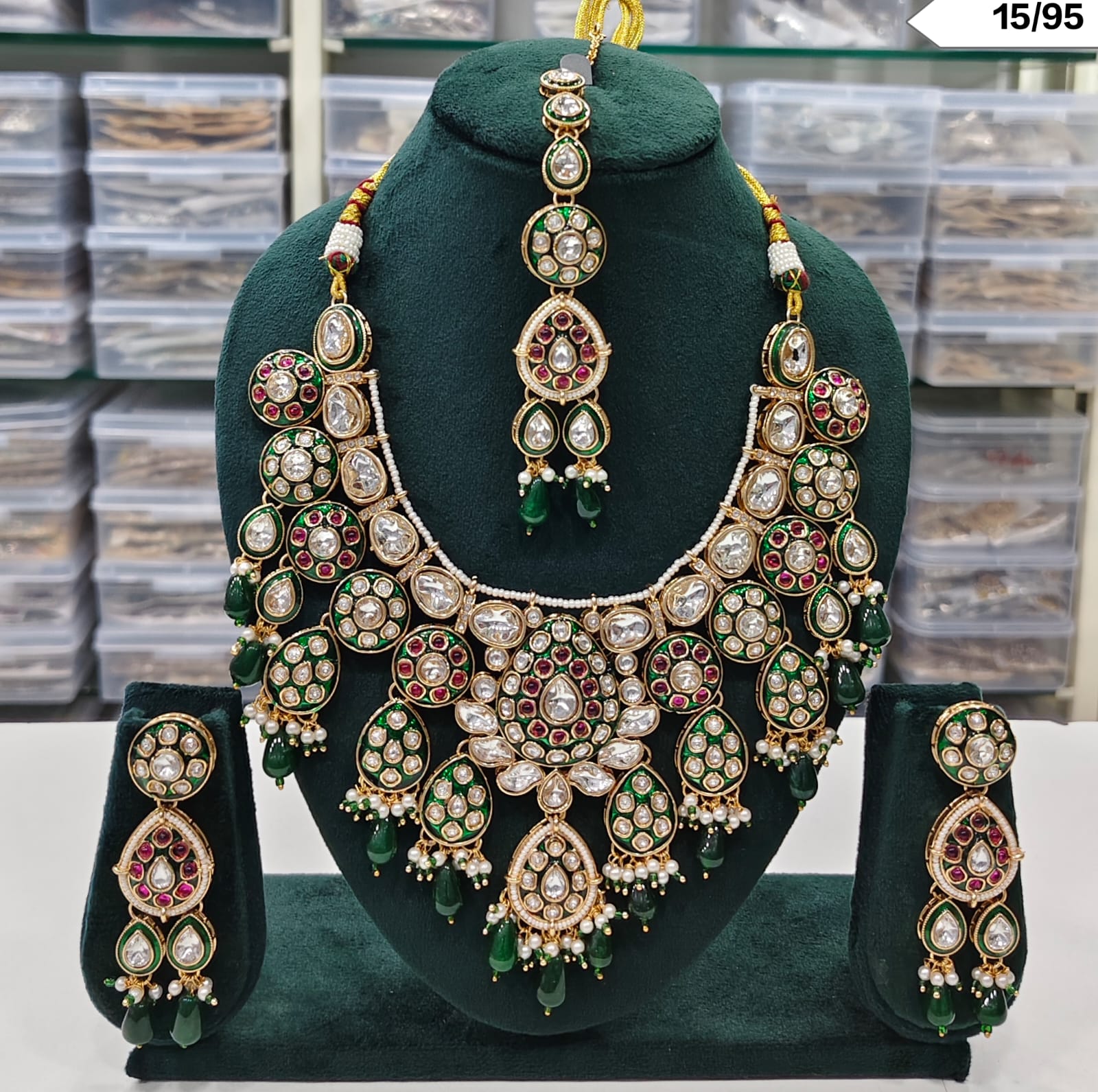 Includes necklace, matching earrings, and maang tikka
