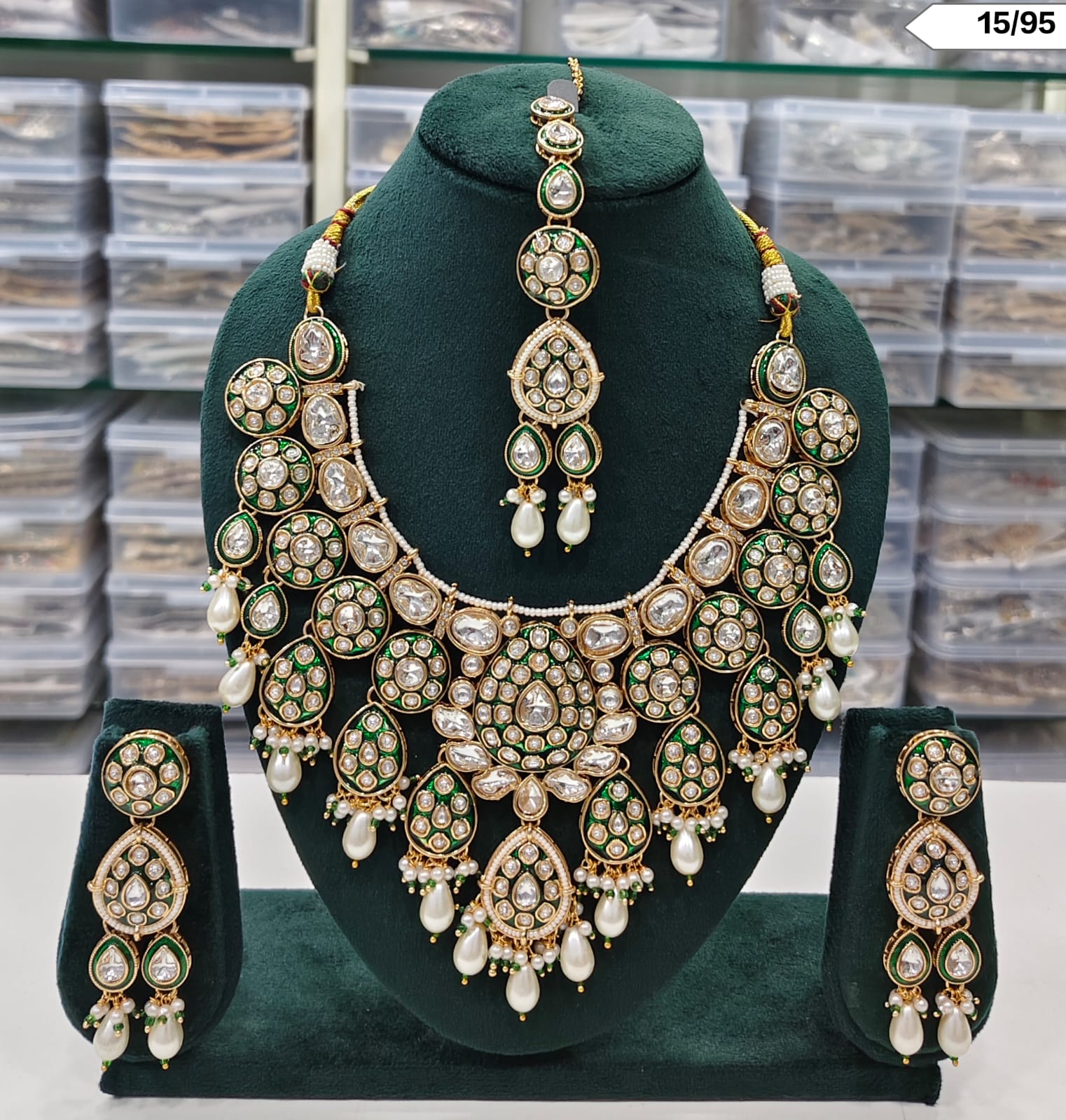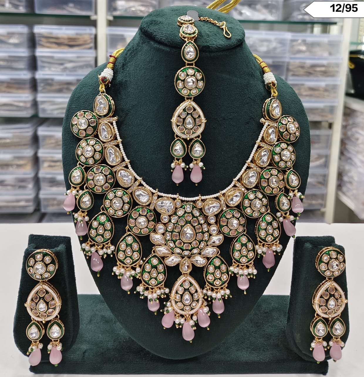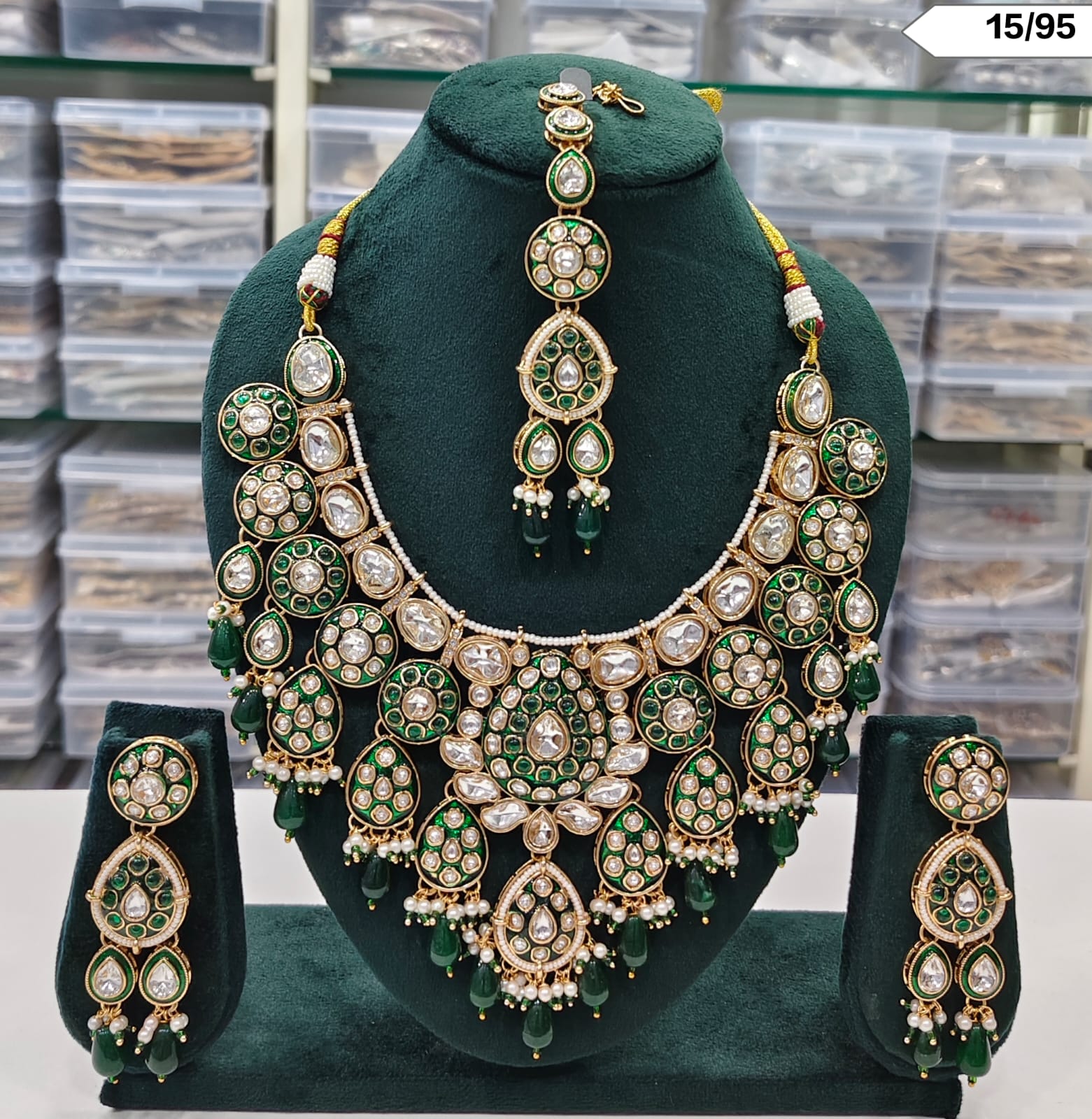 Includes necklace, matching earrings, and maang tikka
