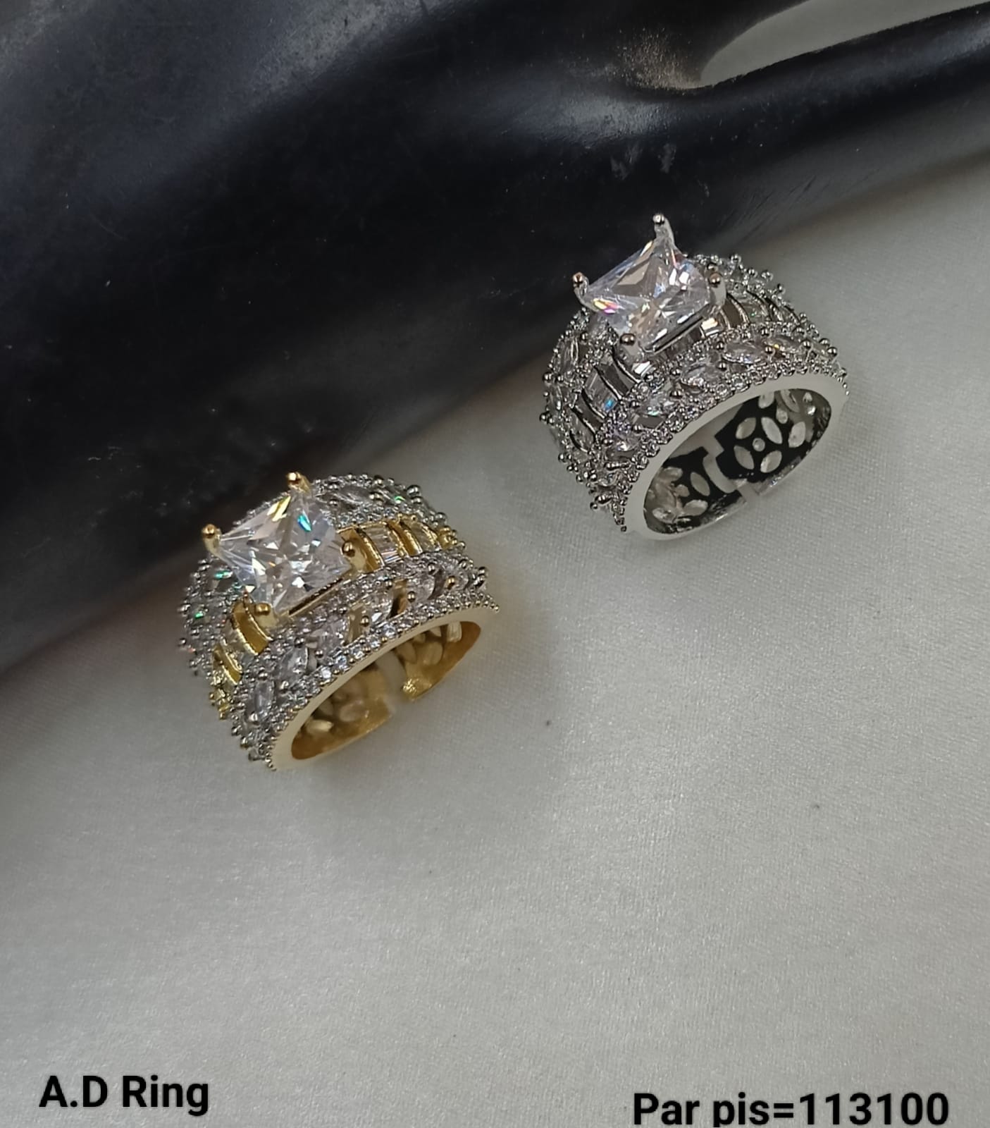 Silver & Gold Plated American Diamond Fashion Finger Ring Per pieces