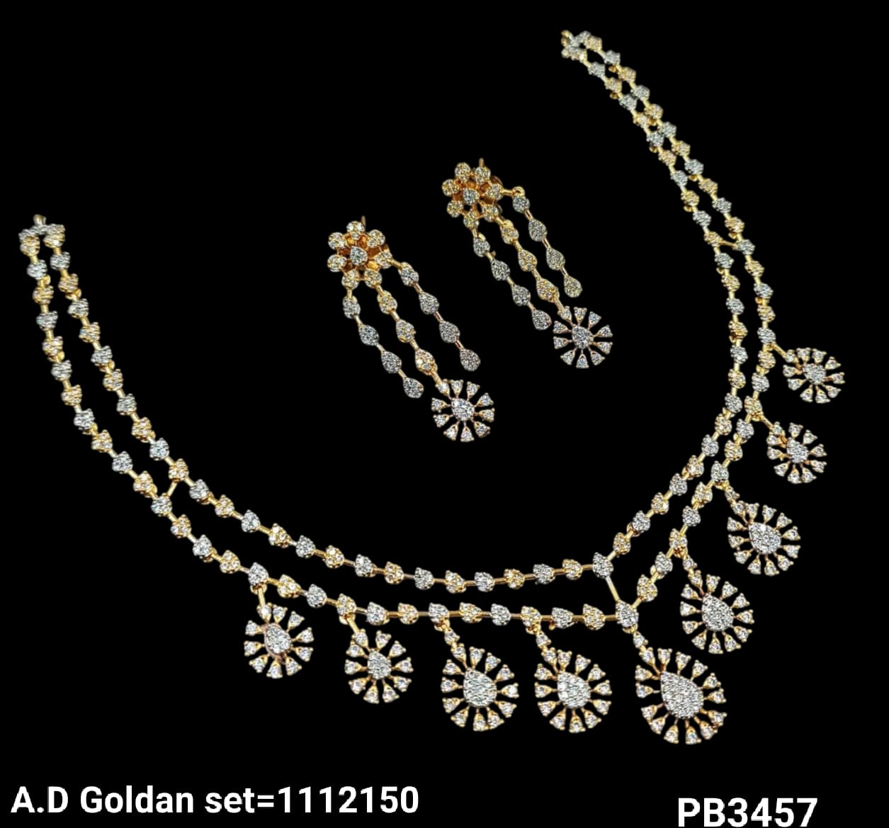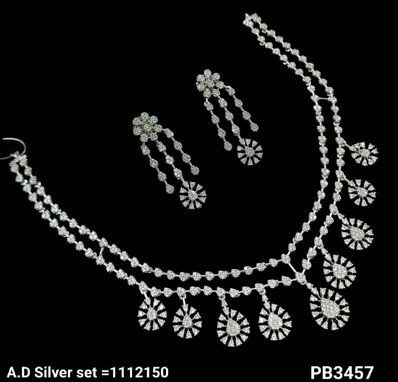 This exquisite necklace set features a blend of silver and gold plating, adorned with sparkling American diamonds for a sophisticated and elegant look.