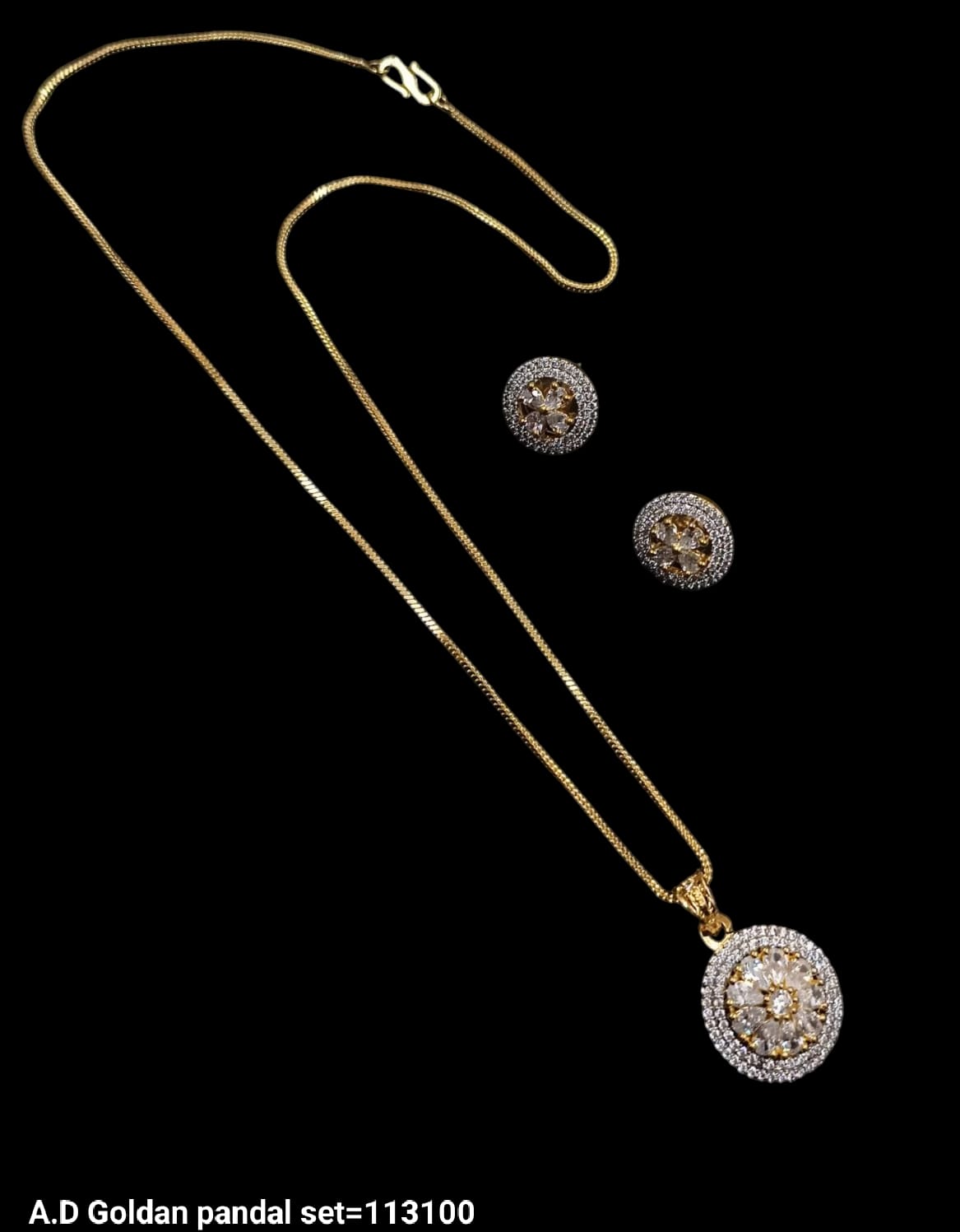 This pendant set features American diamonds elegantly plated in both silver and gold, combining classic design with refined craftsmanship.