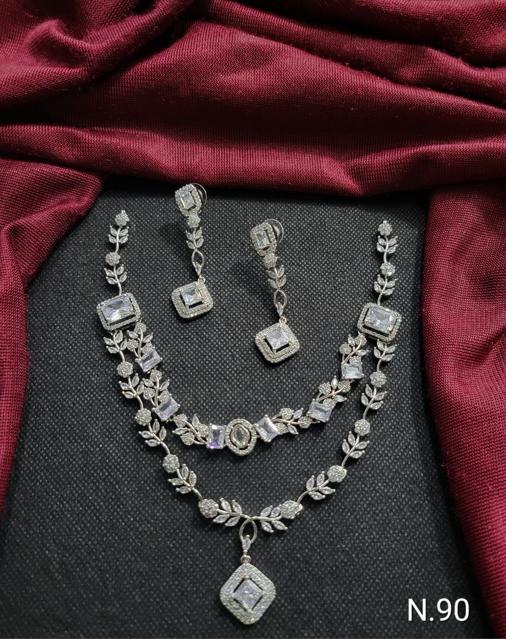Elevate your ensemble with this Elegant Double-Layer AD Stone Necklace Set, accompanied by matching earrings. Crafted with precision, the double-layer design enhances depth and sophistication, while the AD stones add a refined sparkle. Perfect for formal occasions, this set offers a balanced blend of traditional charm and contemporary elegance, ensuring a distinguished and polished look.