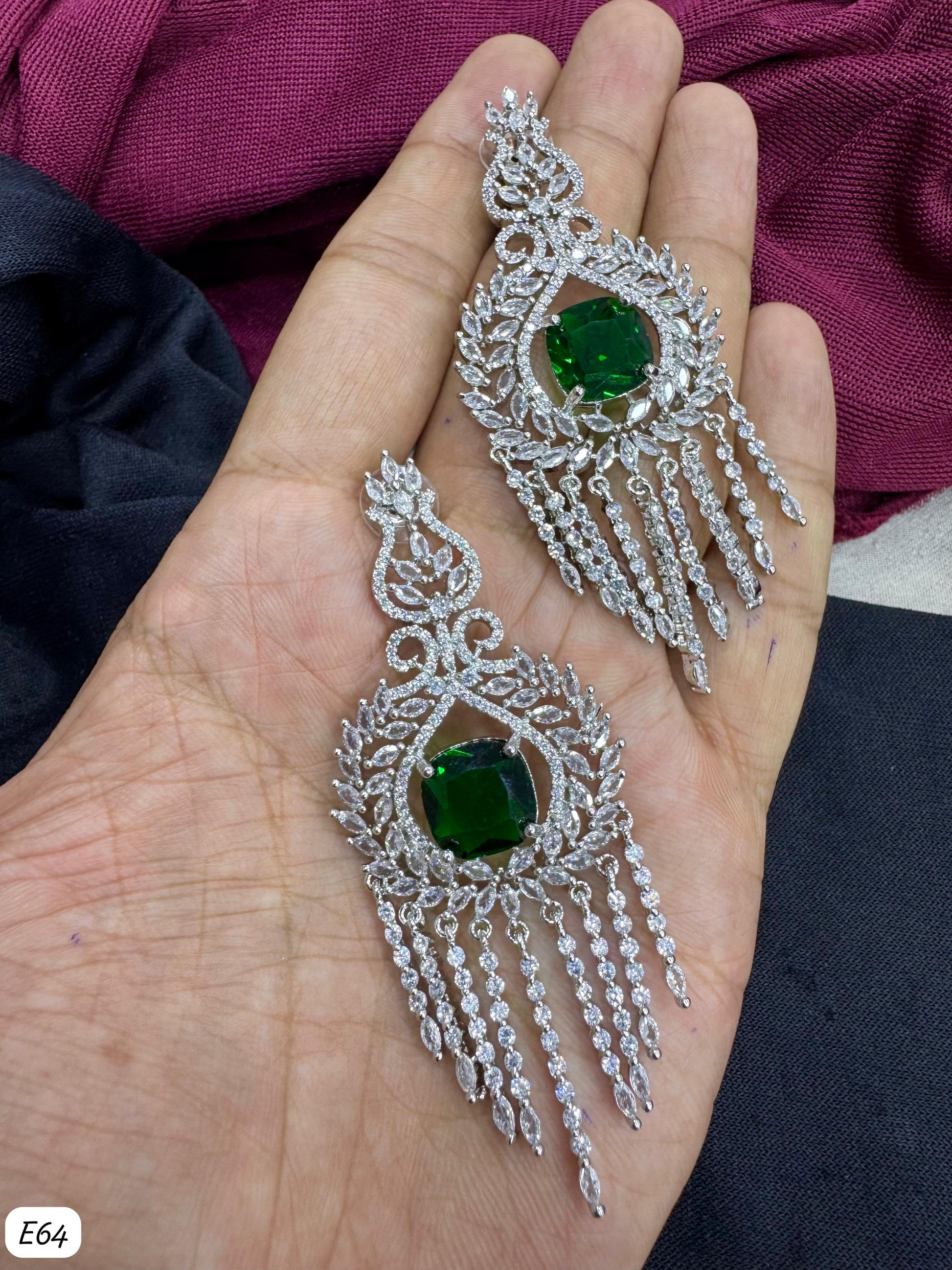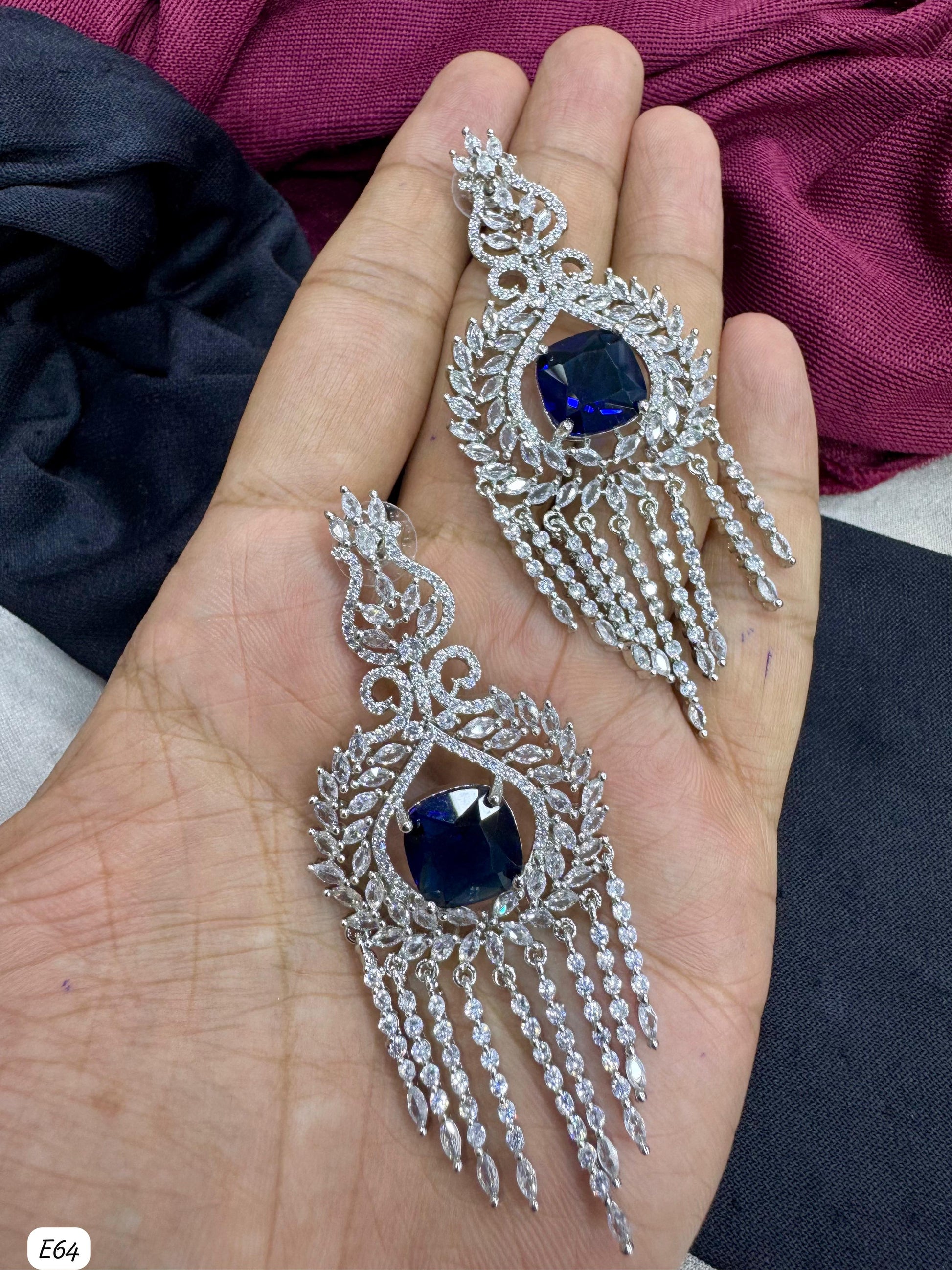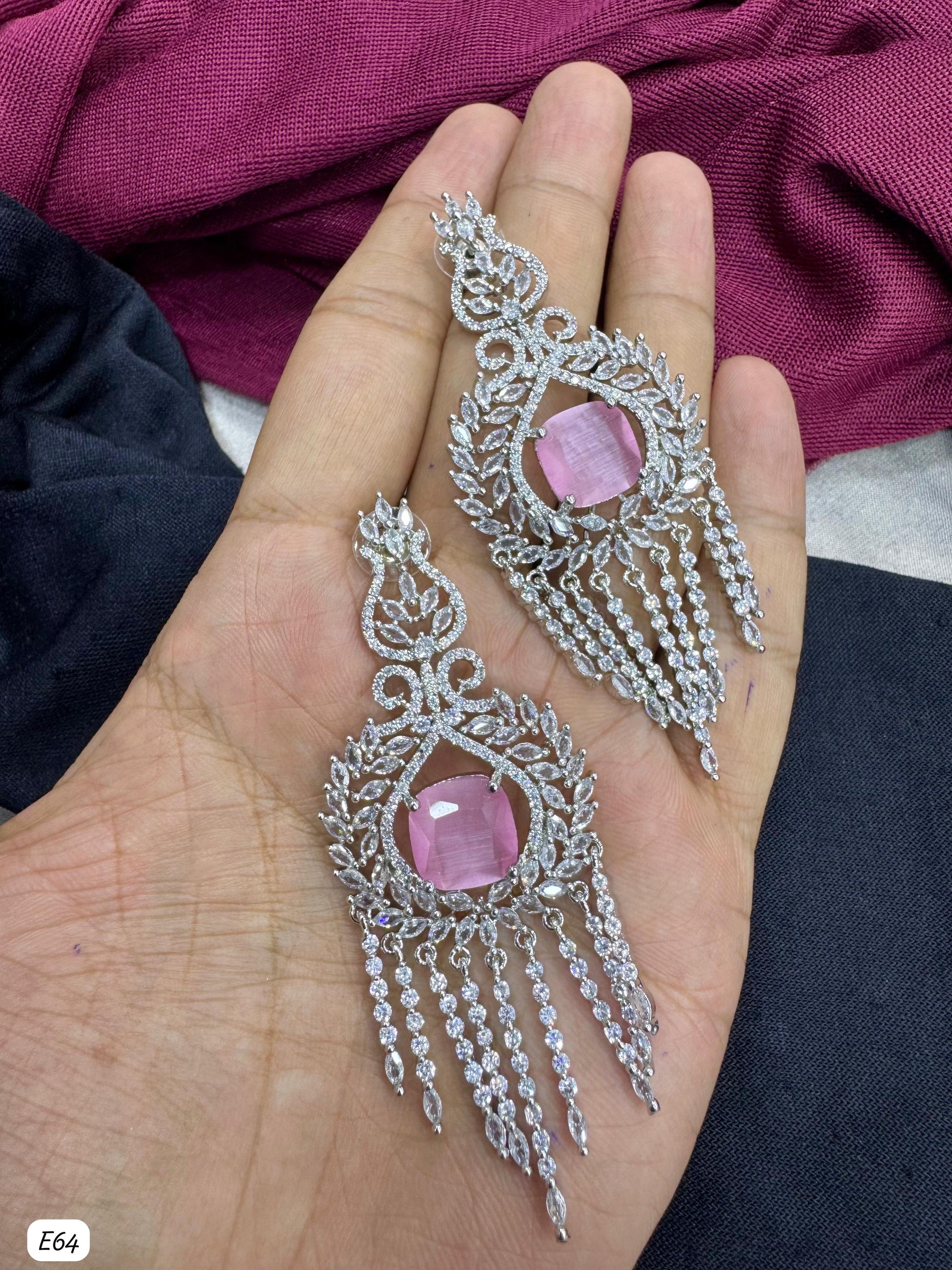These earrings combine a silver-plated finish with meticulously set American diamonds, exemplifying expert design and timeless elegance.