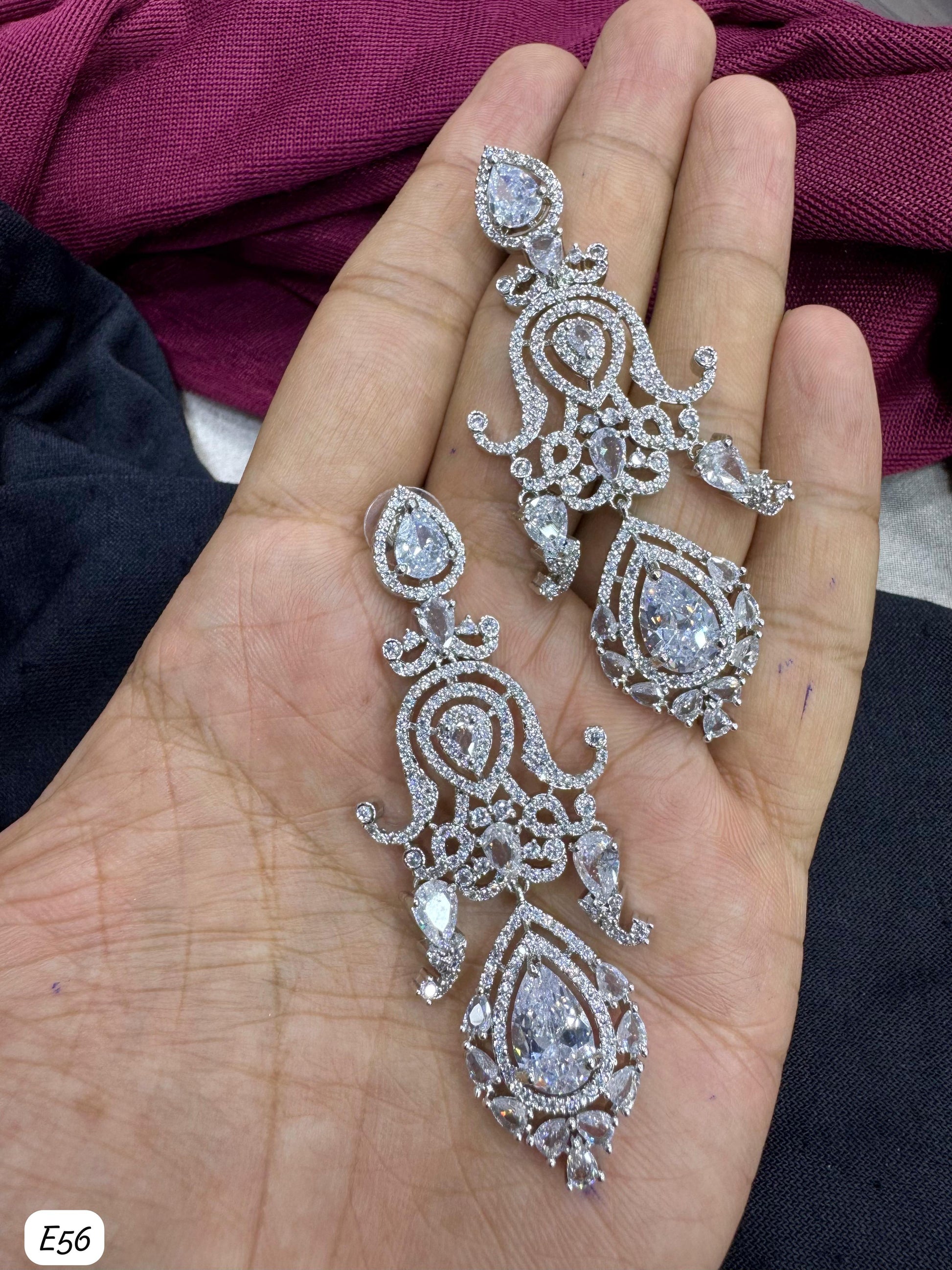 Crafted with a silver-plated base and embellished with American diamonds, these earrings provide a sophisticated and timeless touch to any ensemble.