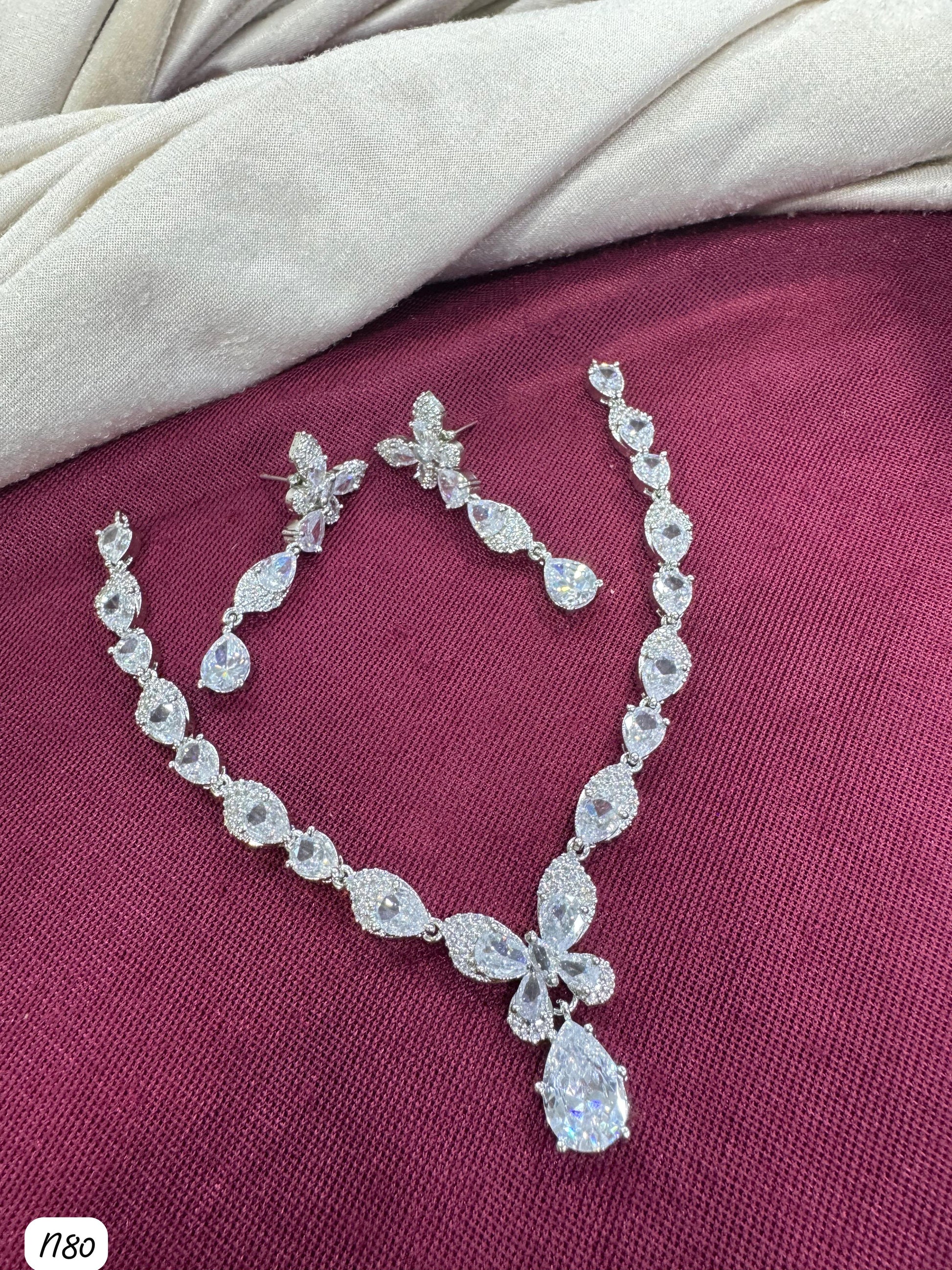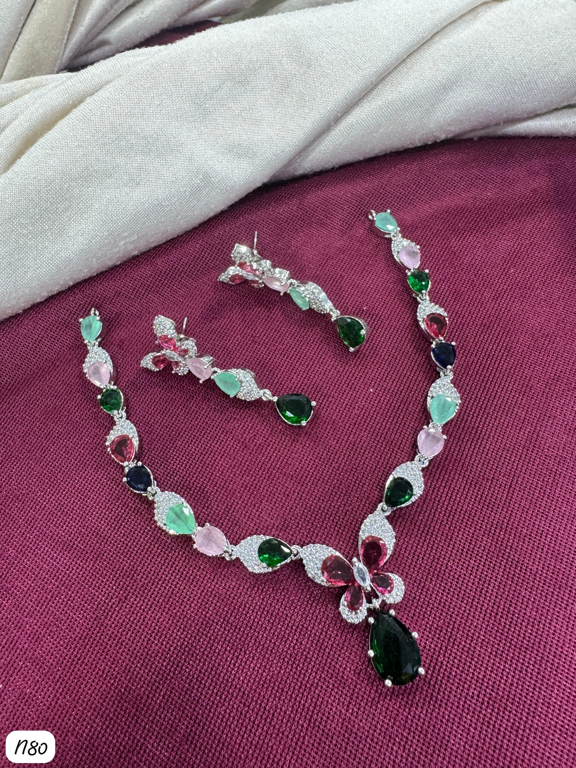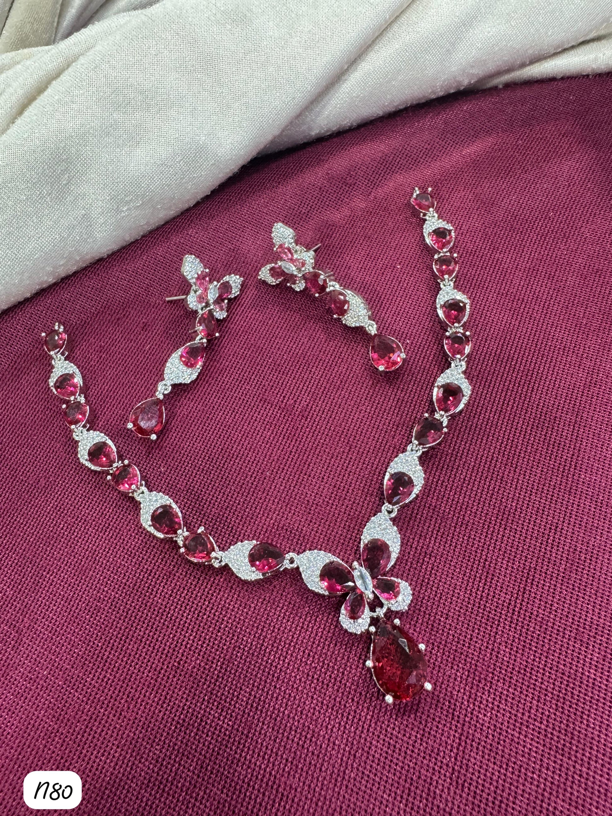 Butterfly Drop AD Stone Necklace Set with Matching Earrings