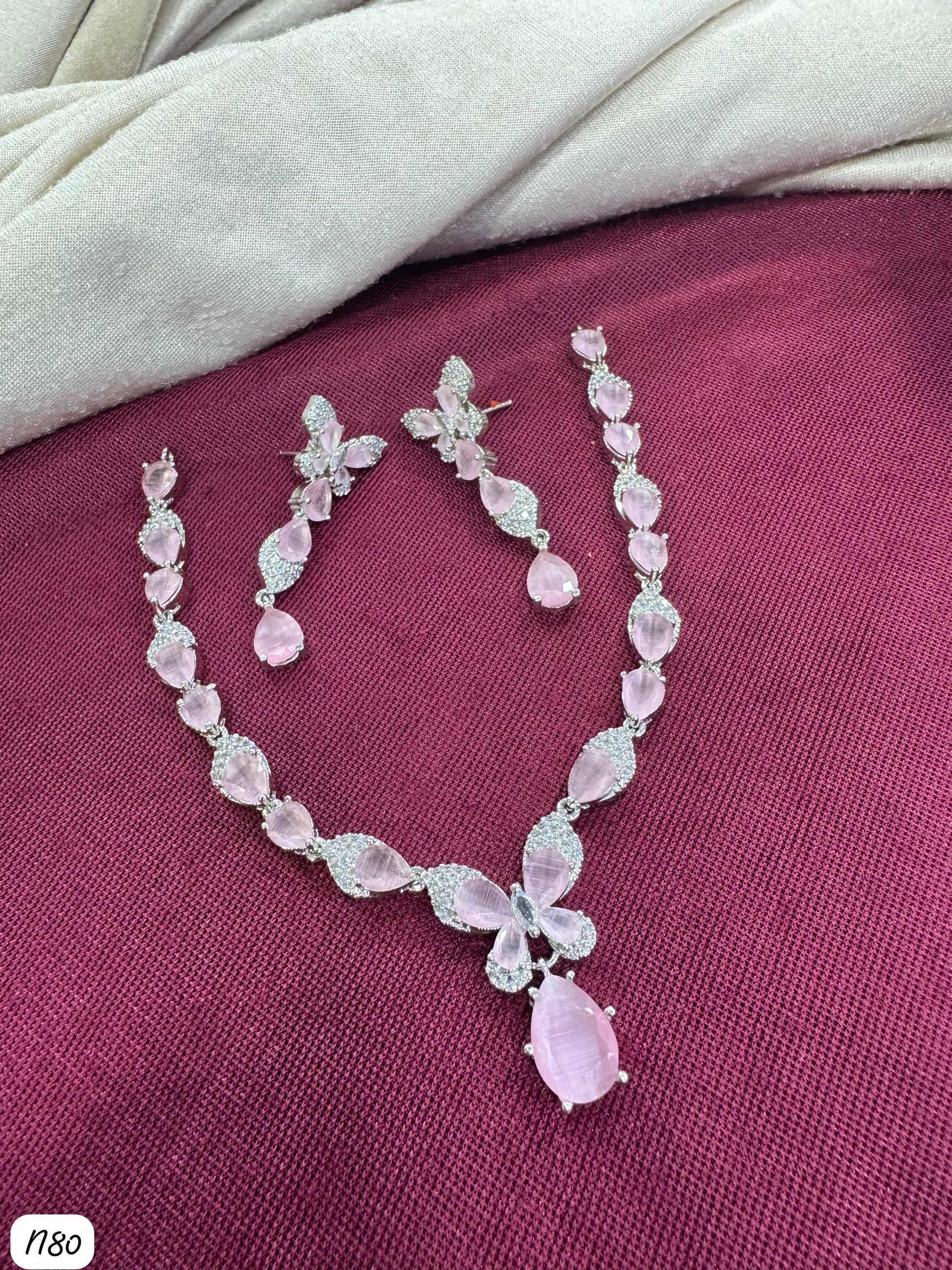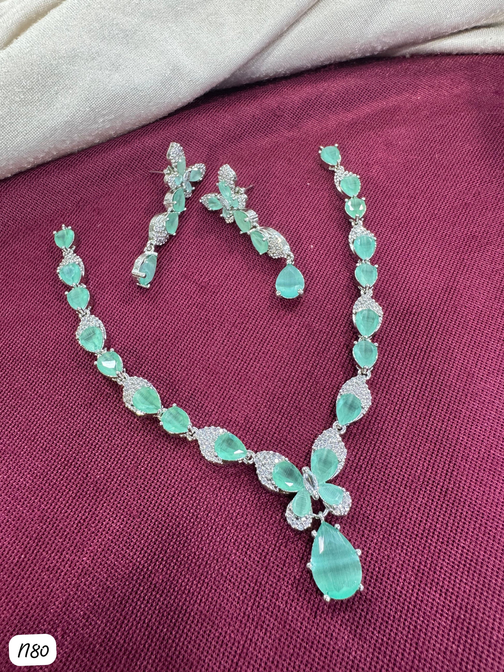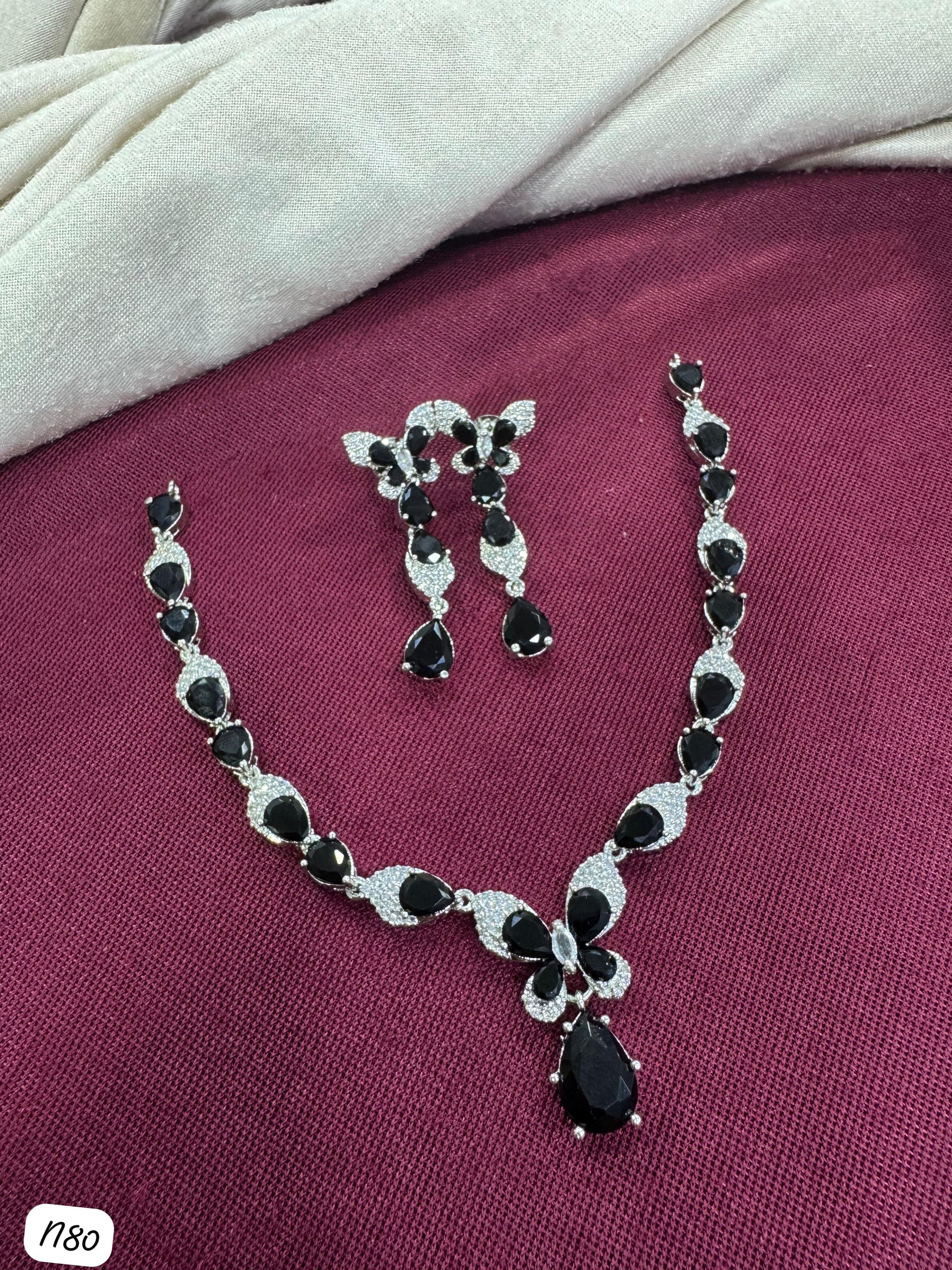 Butterfly Drop AD Stone Necklace Set with Matching Earrings
