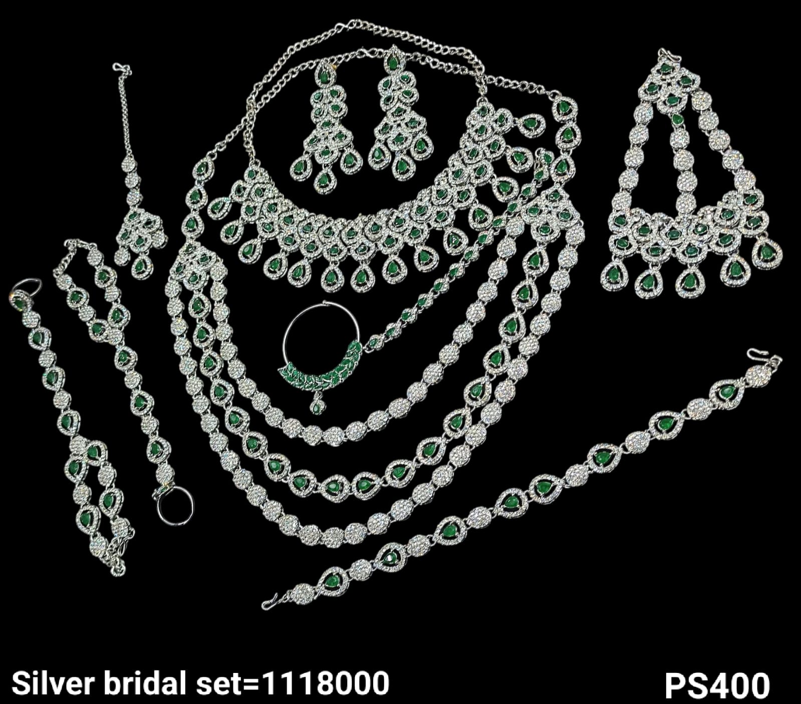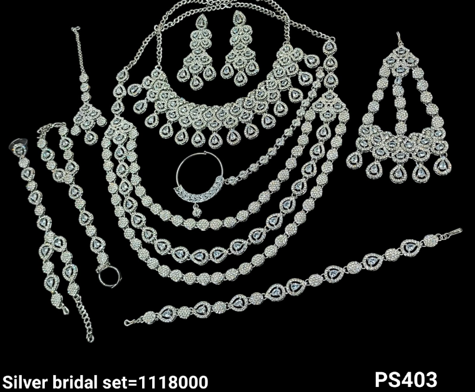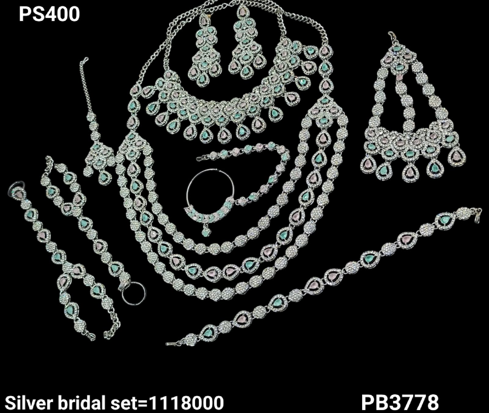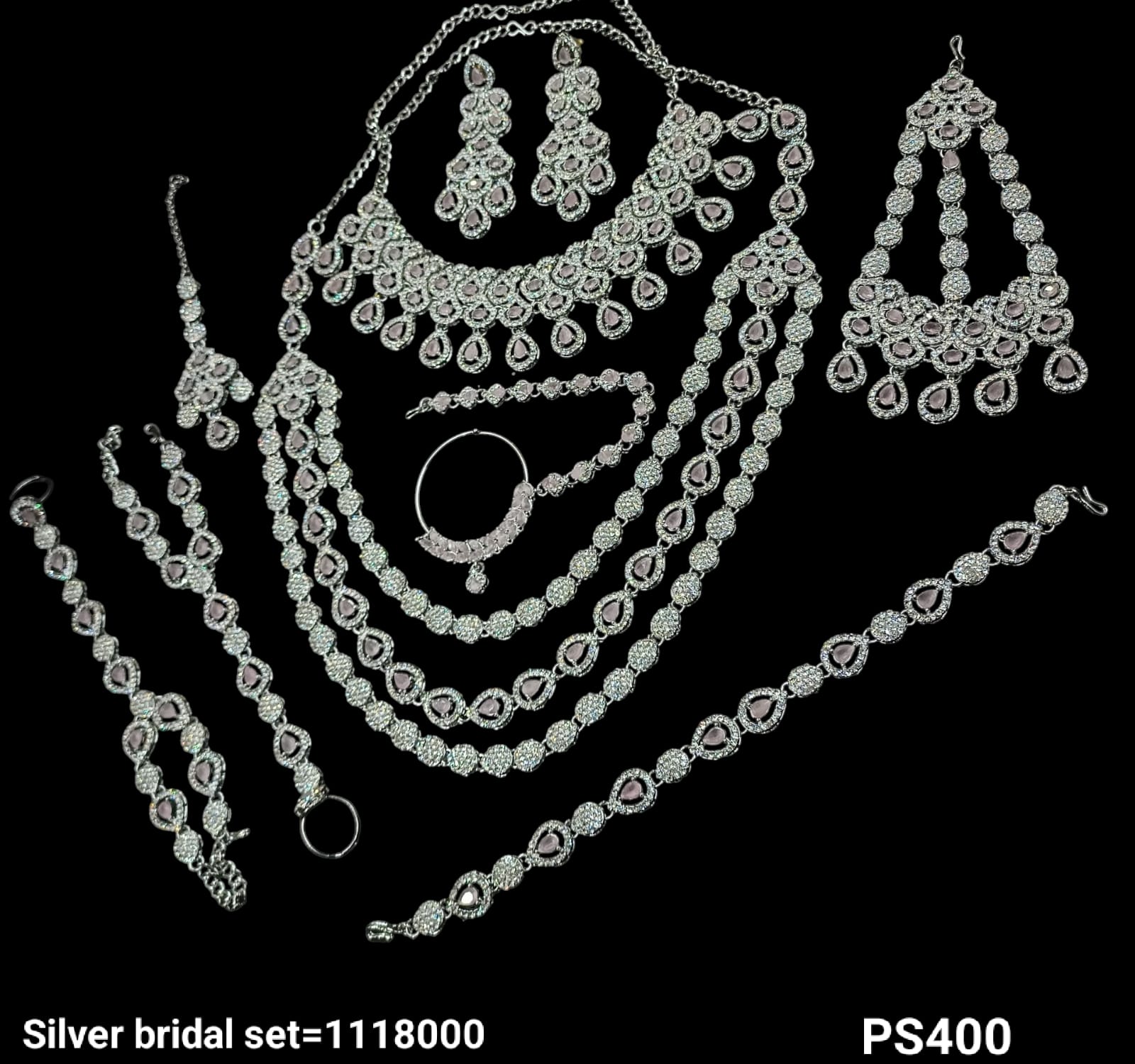 A beautifully crafted bridal set finished with a refined silver plating, perfect for adding a classic touch to wedding attire.