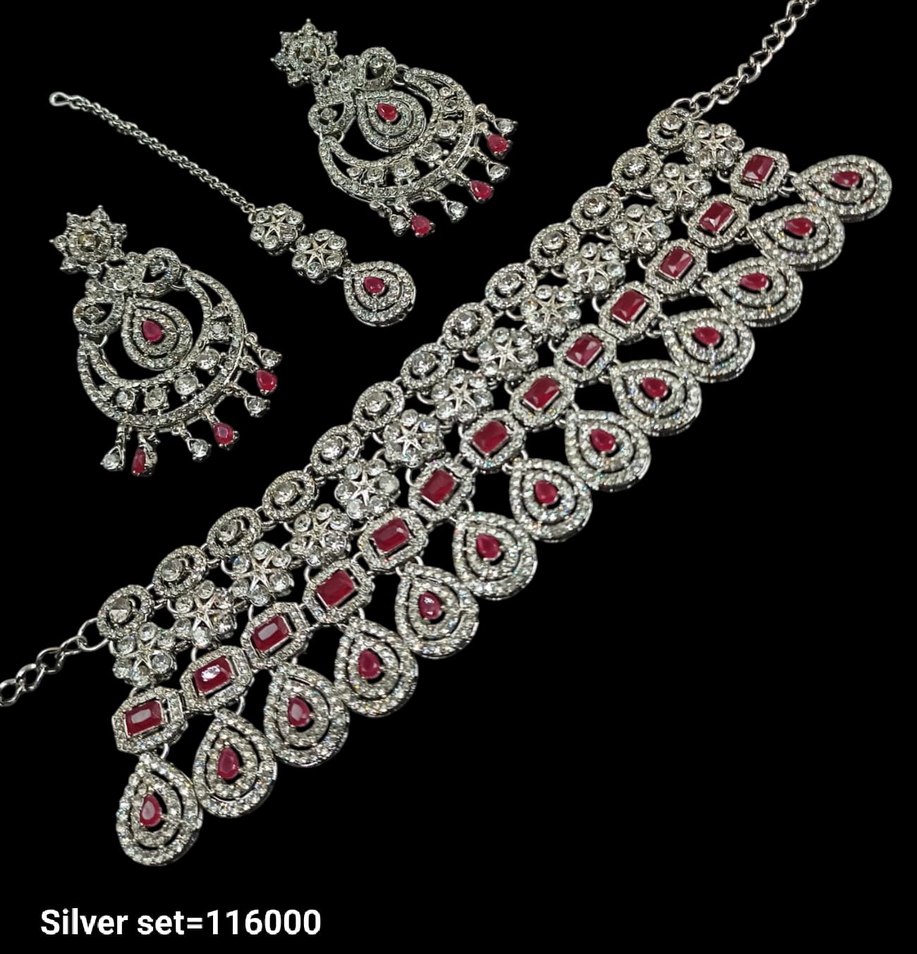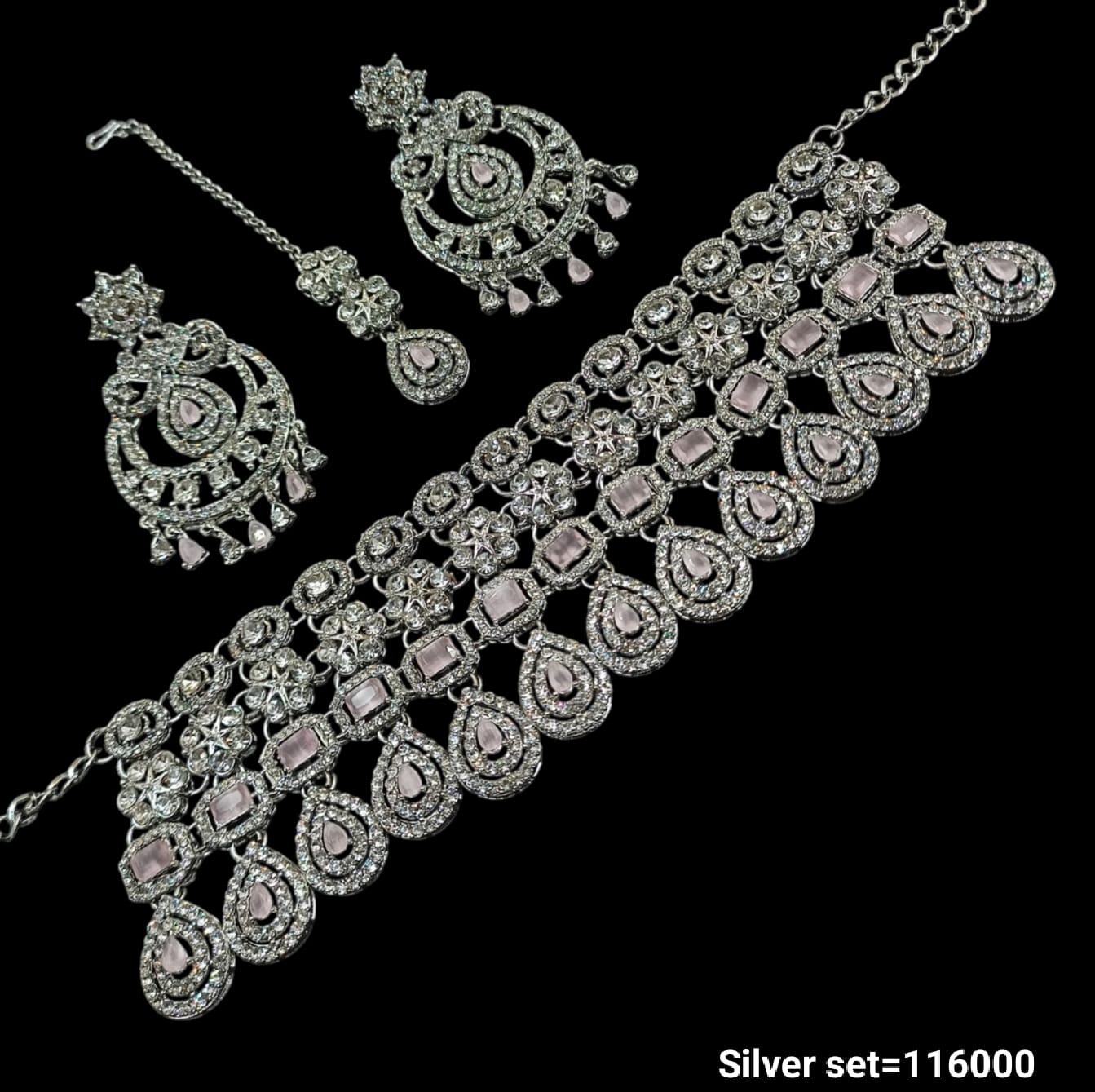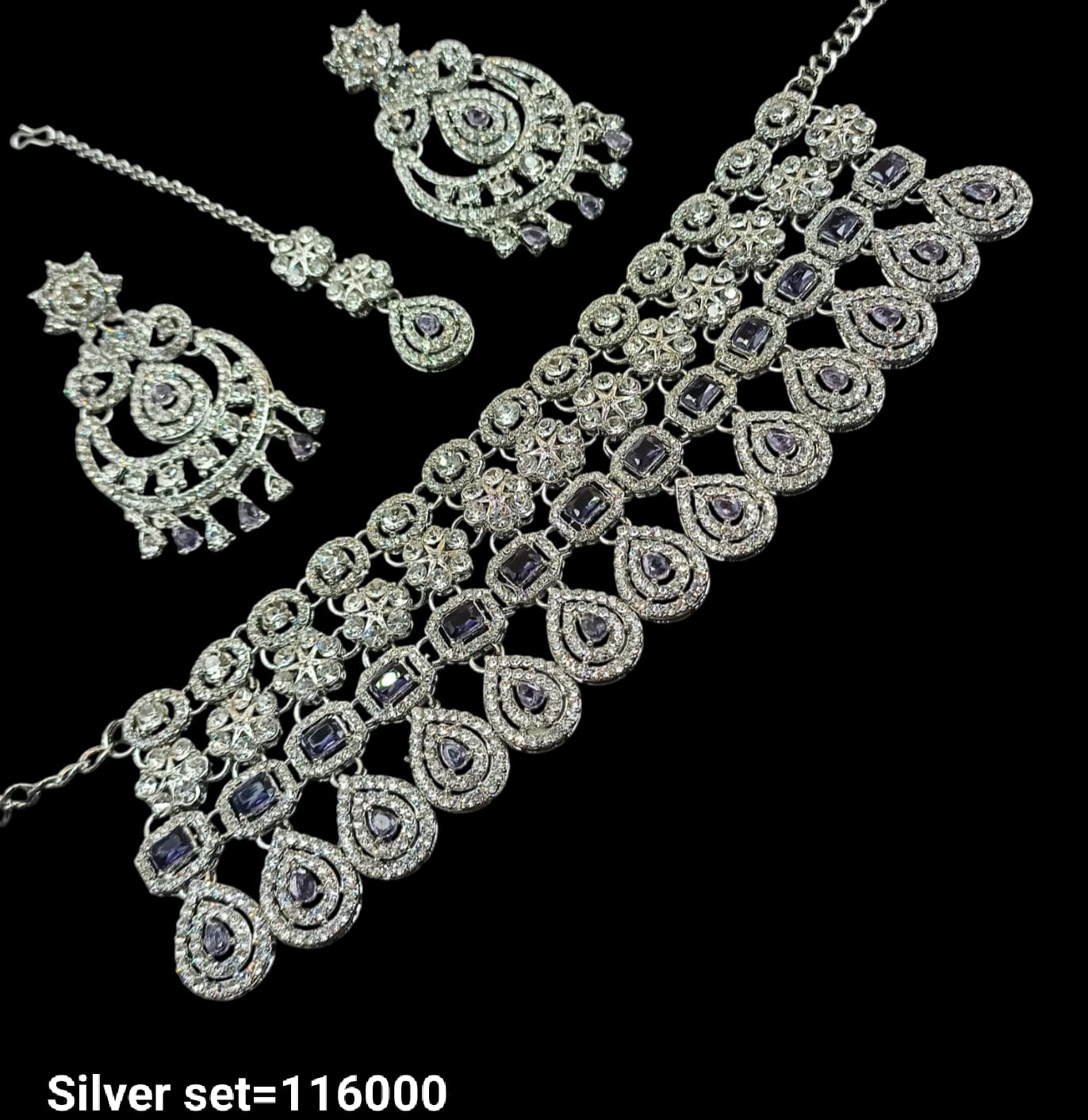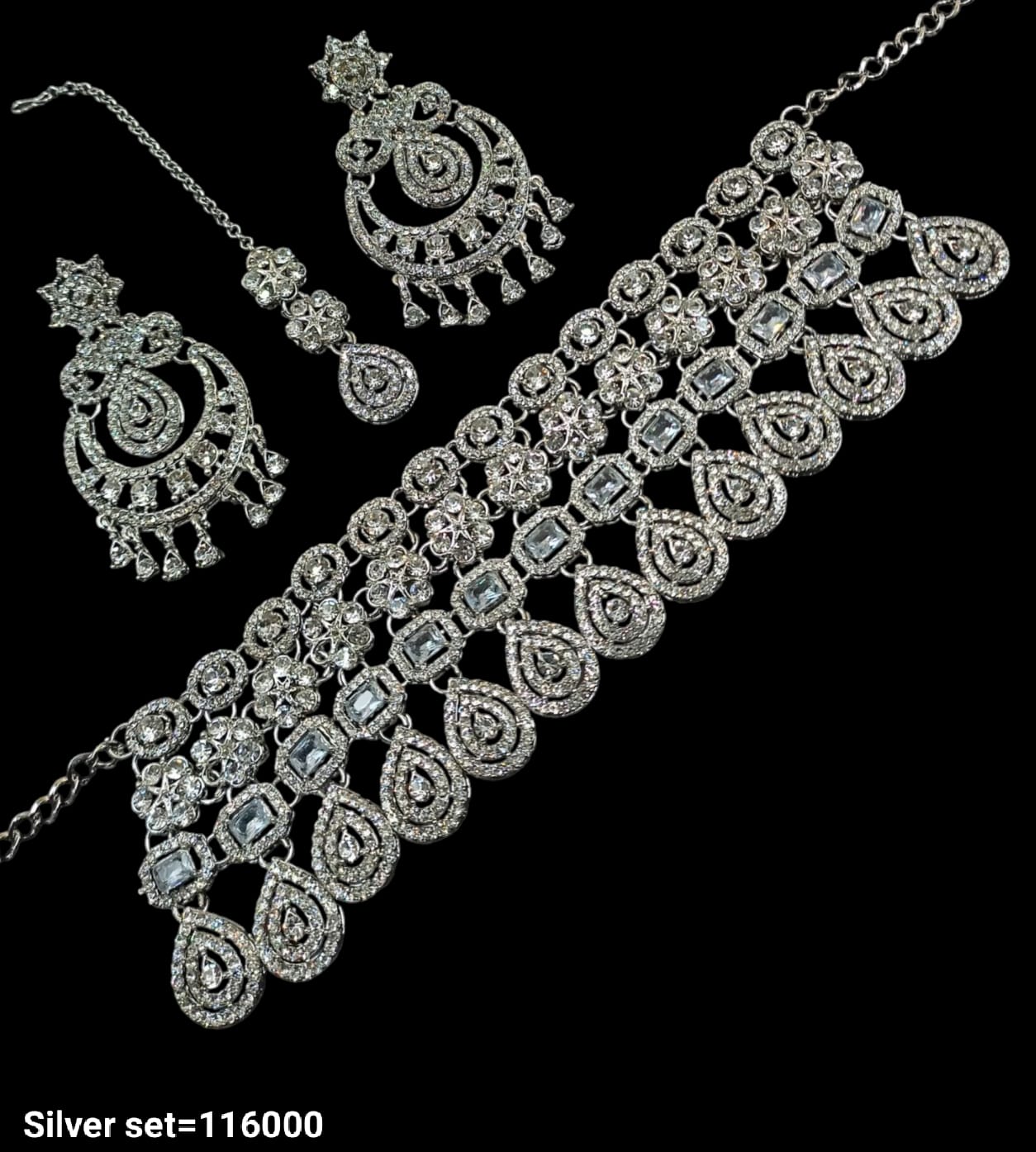 Elevate your style with this intricately designed silver-plated choker necklace set, perfect for adding a sophisticated touch to any ensemble.
