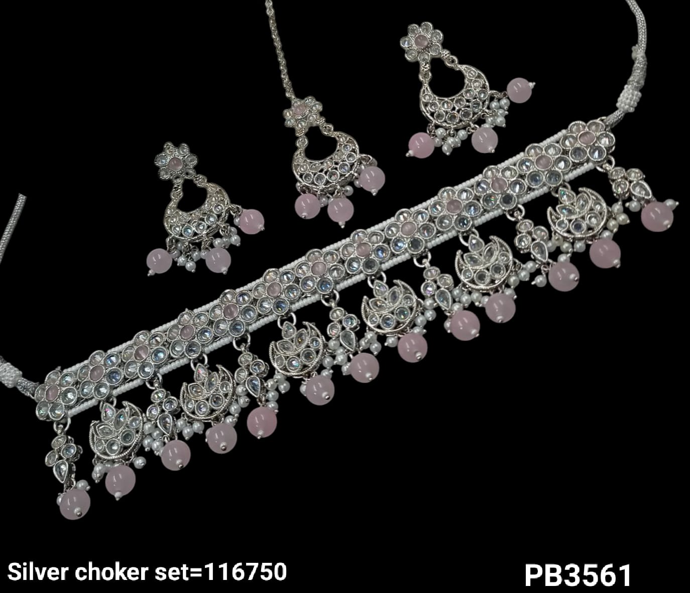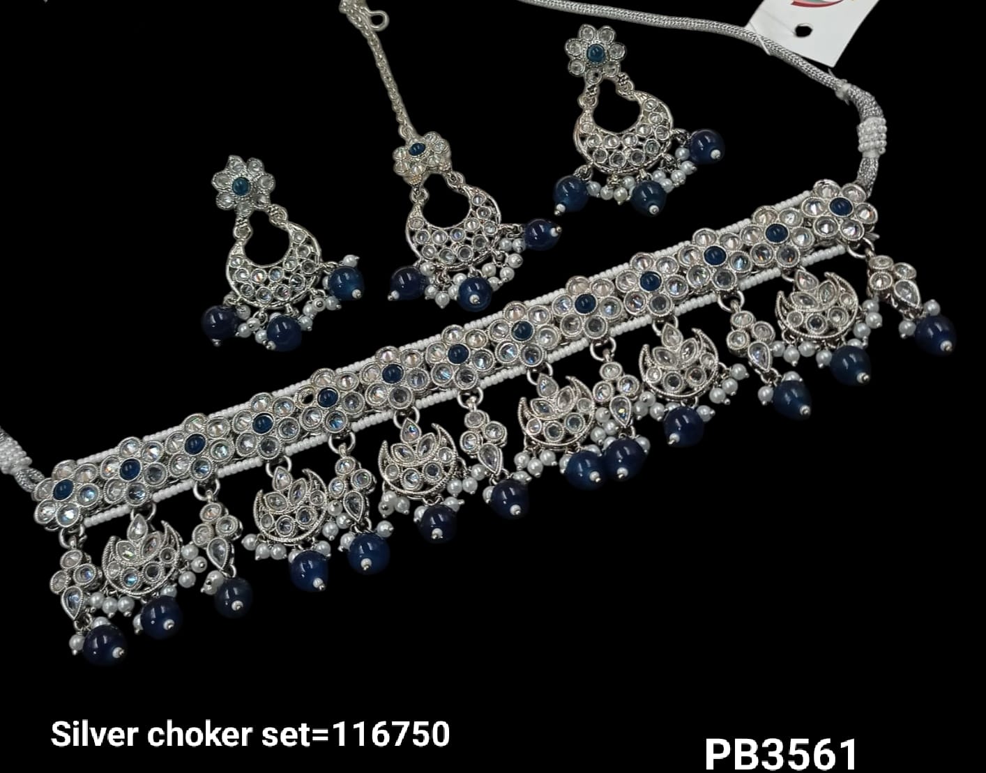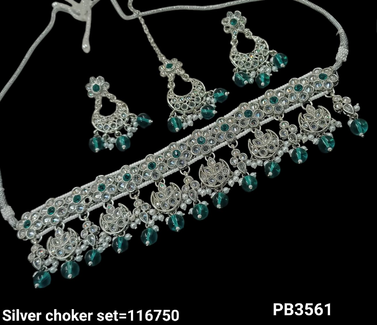 This elegant choker necklace set features a sophisticated silver-plated finish, combining intricate design with refined craftsmanship for a distinguished look.