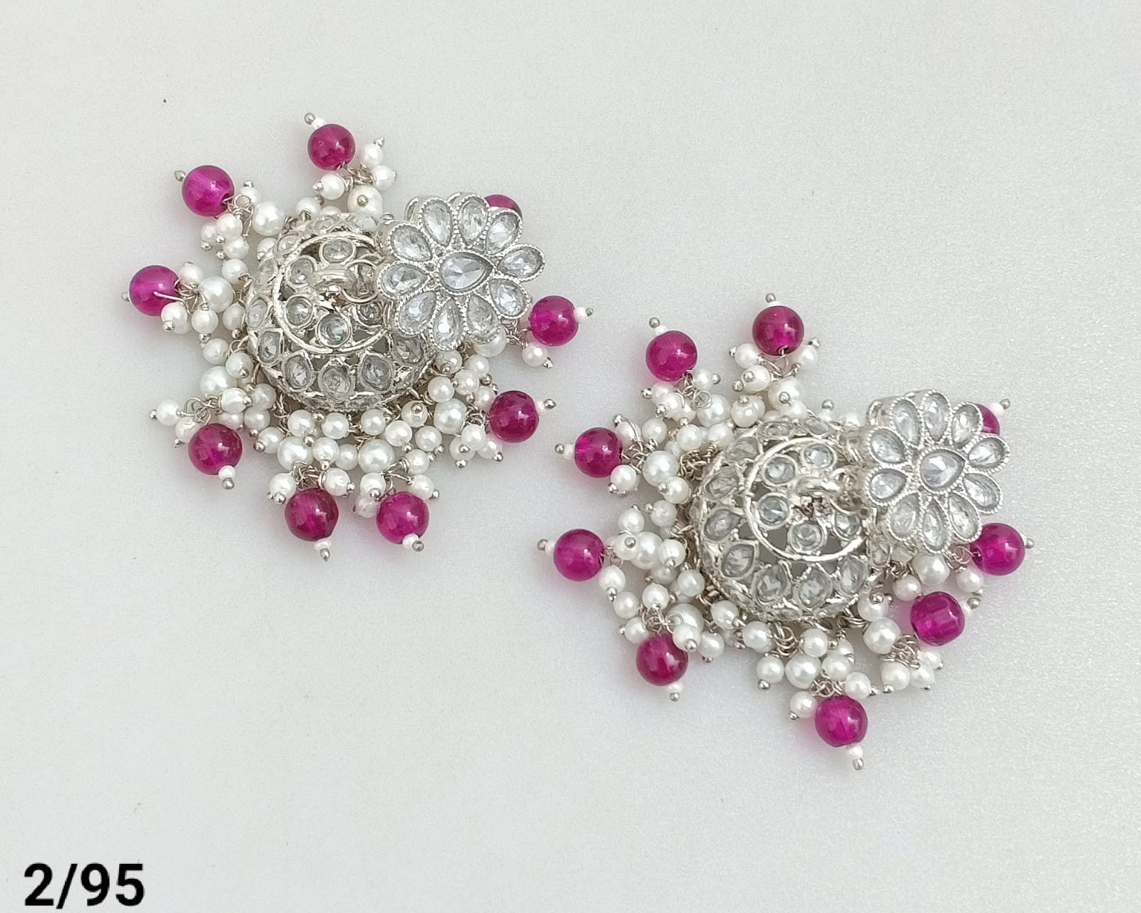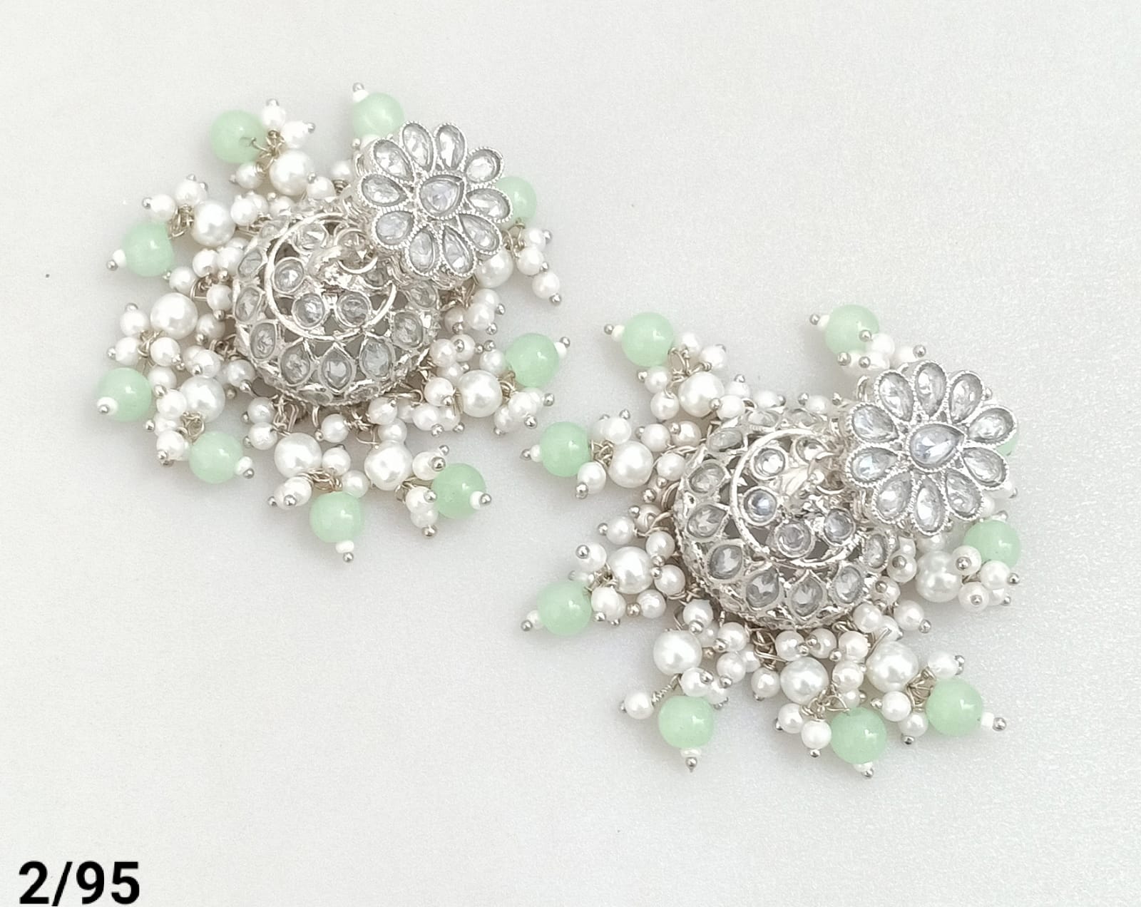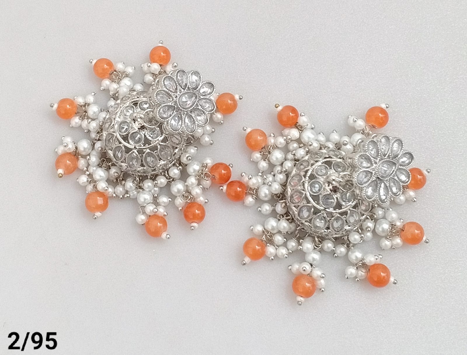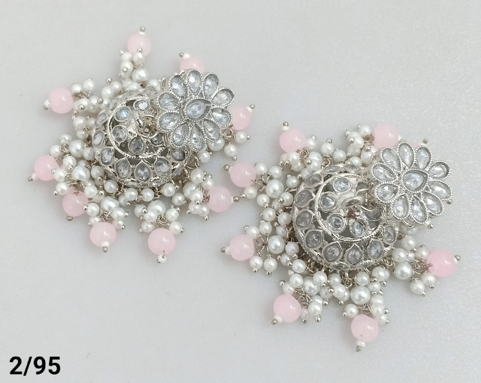 This silver-plated jhumki set showcases detailed artistry and a refined finish, perfect for complementing traditional attire with sophistication and grace.