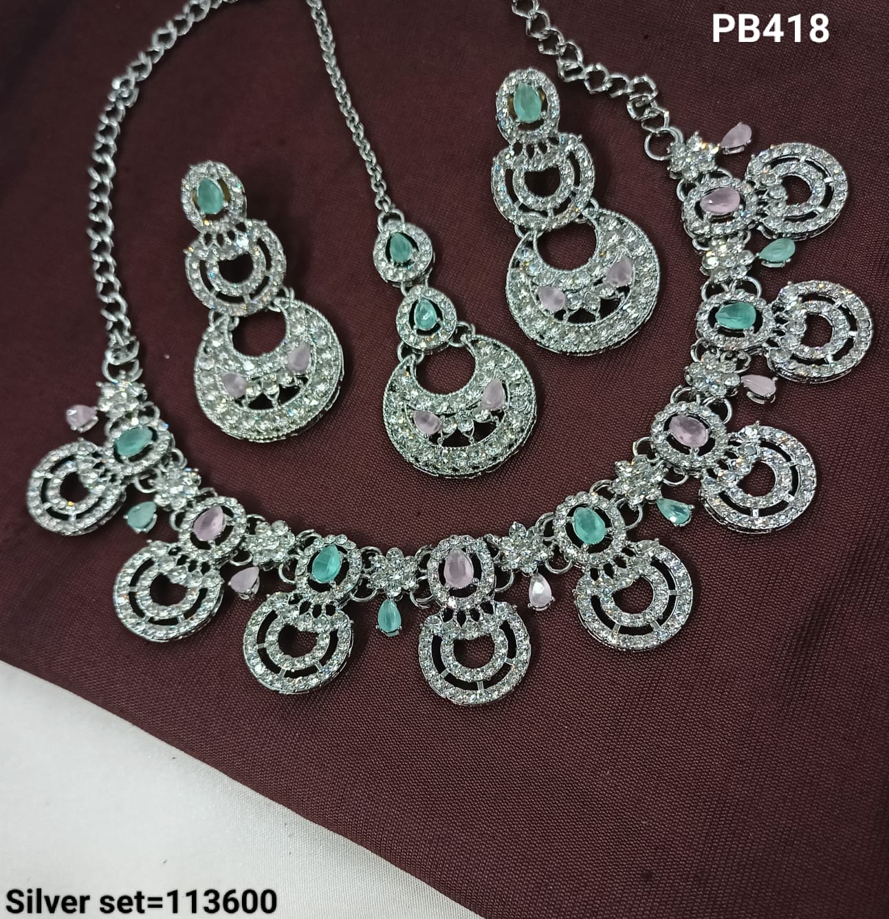 Make a bold impression with our Statement Silver Necklace & Earrings Set, a dazzling fusion of traditional charm and modern flair. Featuring crescent-shaped motifs adorned with sparkling stones and delicate hanging accents, this set is designed to elevate any festive or bridal ensemble. Perfect for weddings, receptions, or celebratory gatherings, it offers a stunning mix of elegance and grandeur that commands attention.
