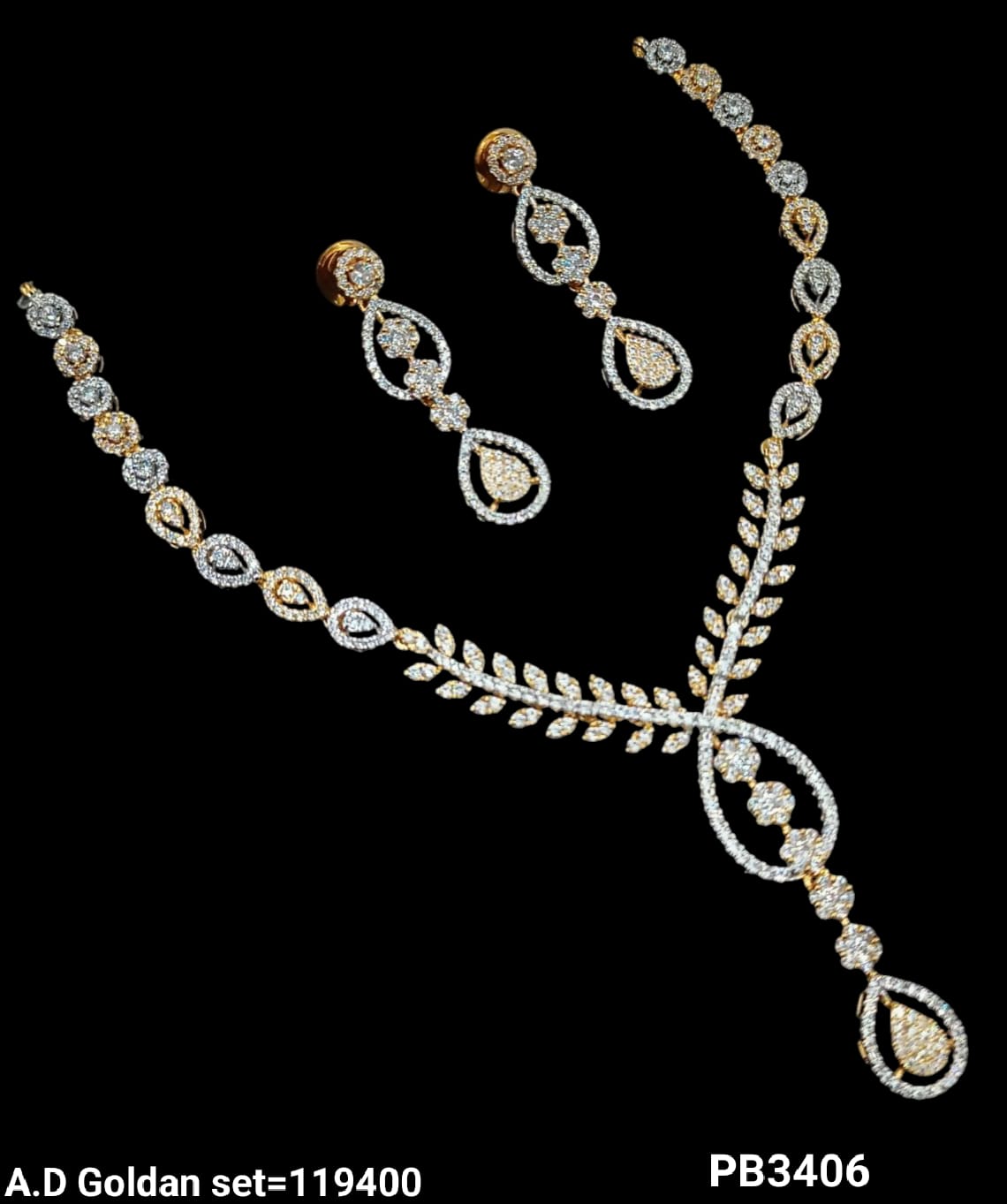 This necklace set features an elegant teardrop design adorned with American diamonds, combining classic style with refined craftsmanship.