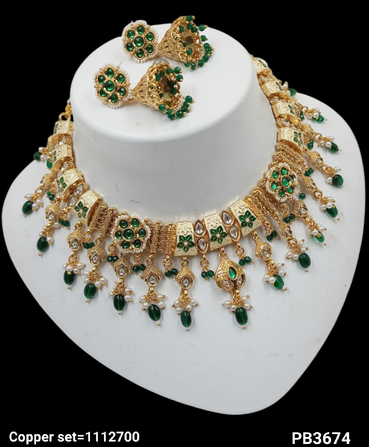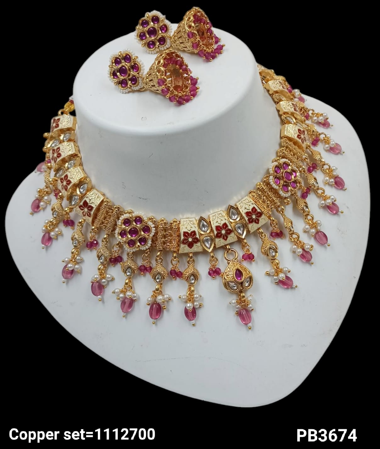 This exquisite necklace set features a traditional design crafted from copper with a rich gold polish, embodying timeless elegance and cultural heritage.