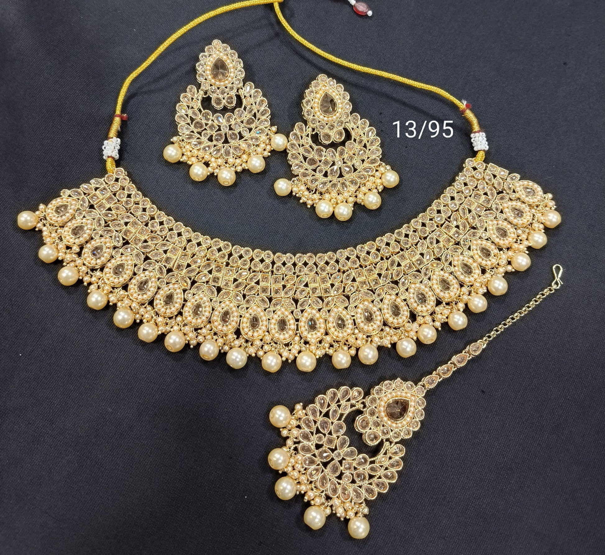 Traditional Gold Plated Choker Necklace Set with Pearl Embellishments