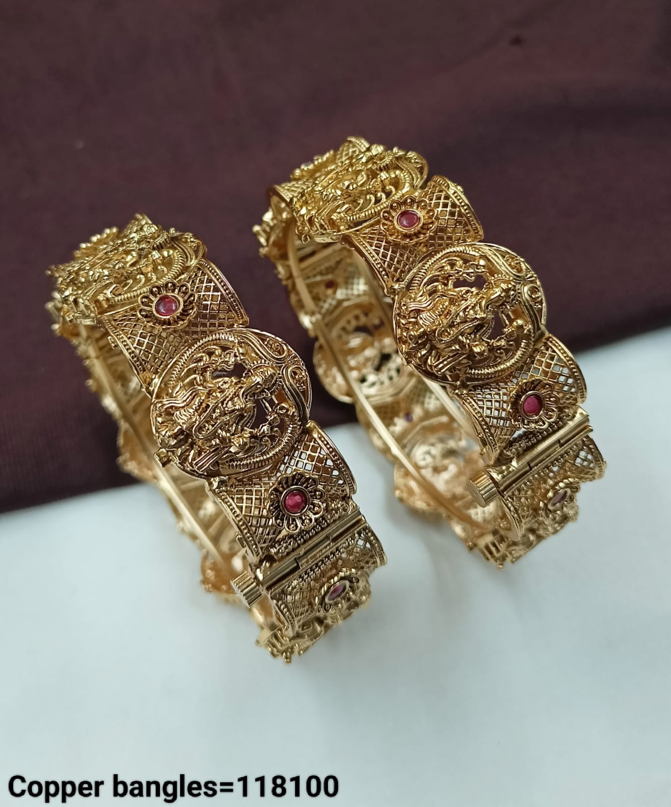 Traditional Temple Jewelry Bangles – Handcrafted Copper with Ruby Stones