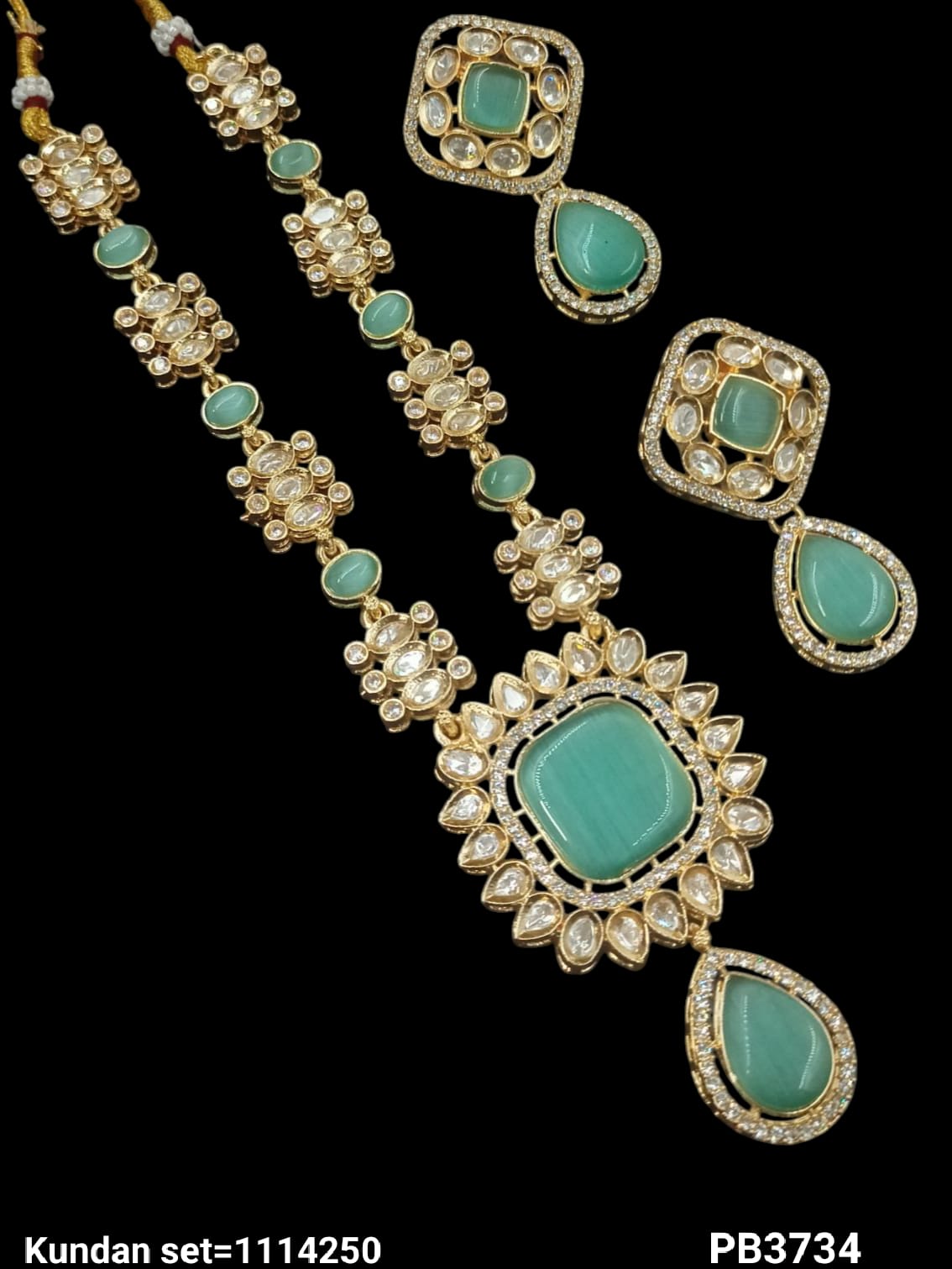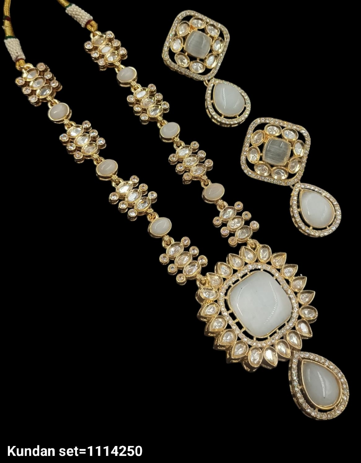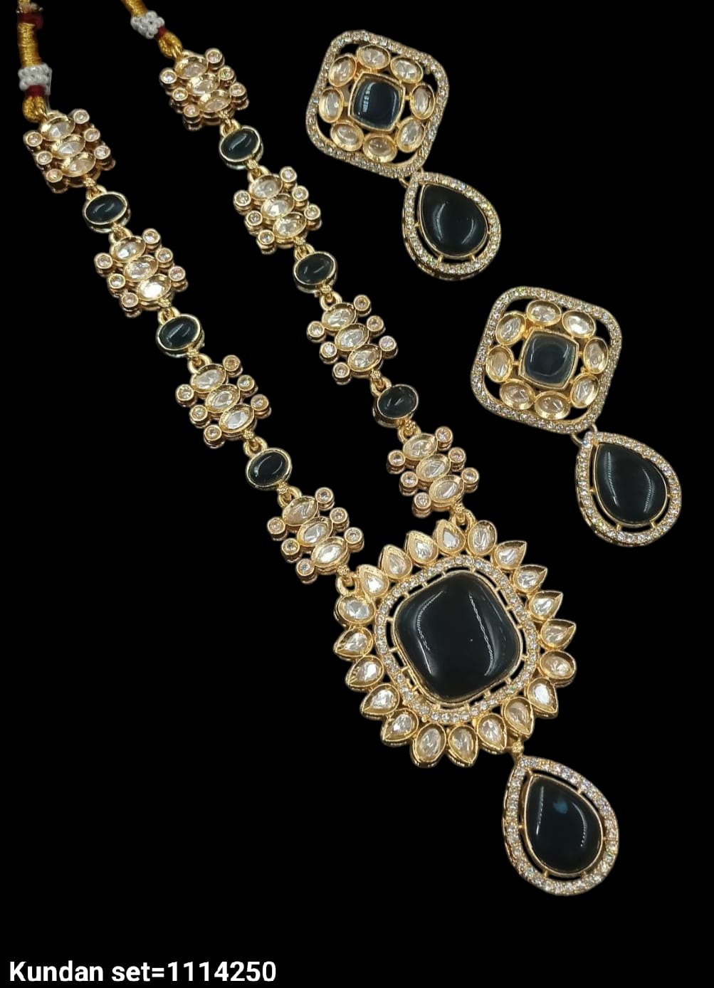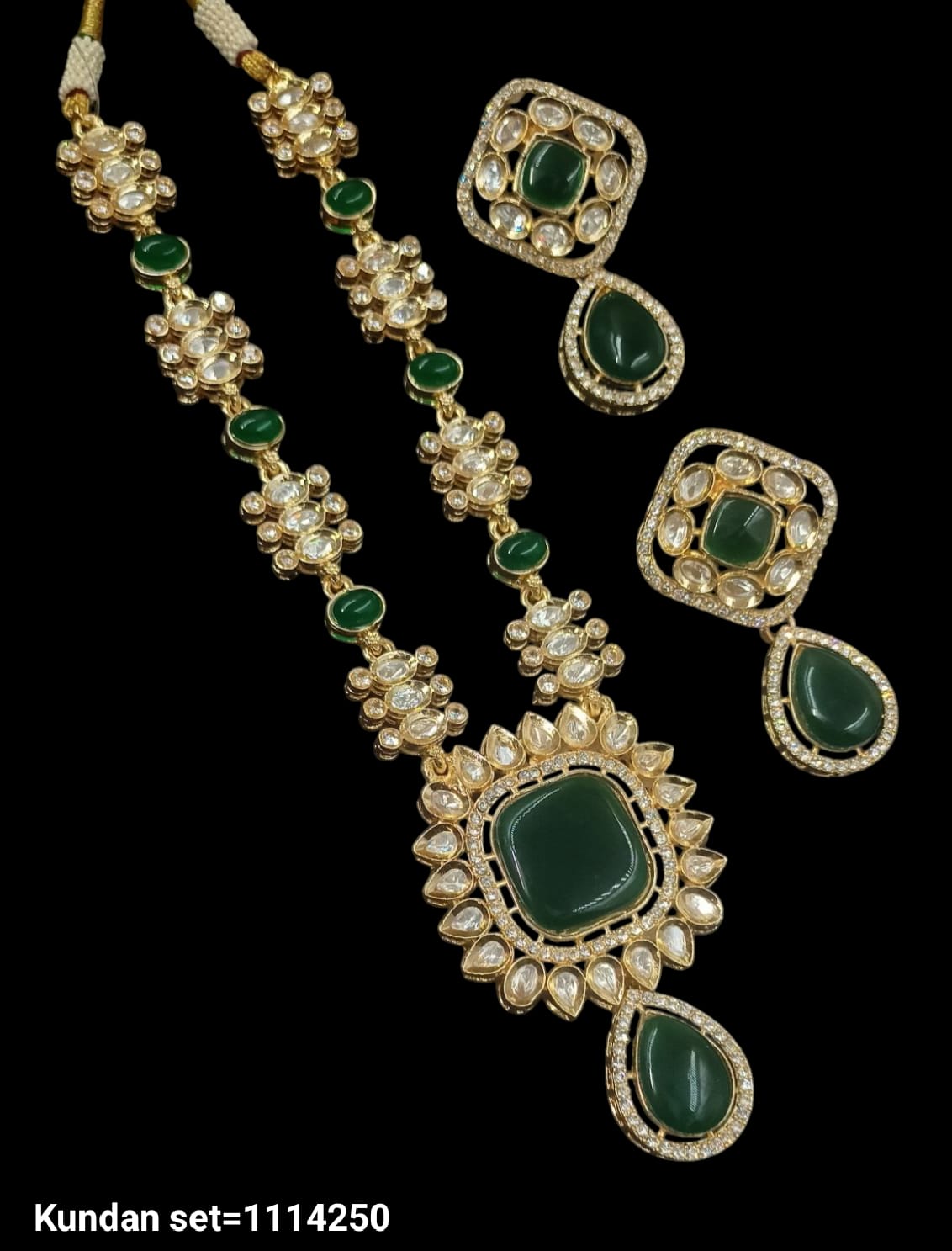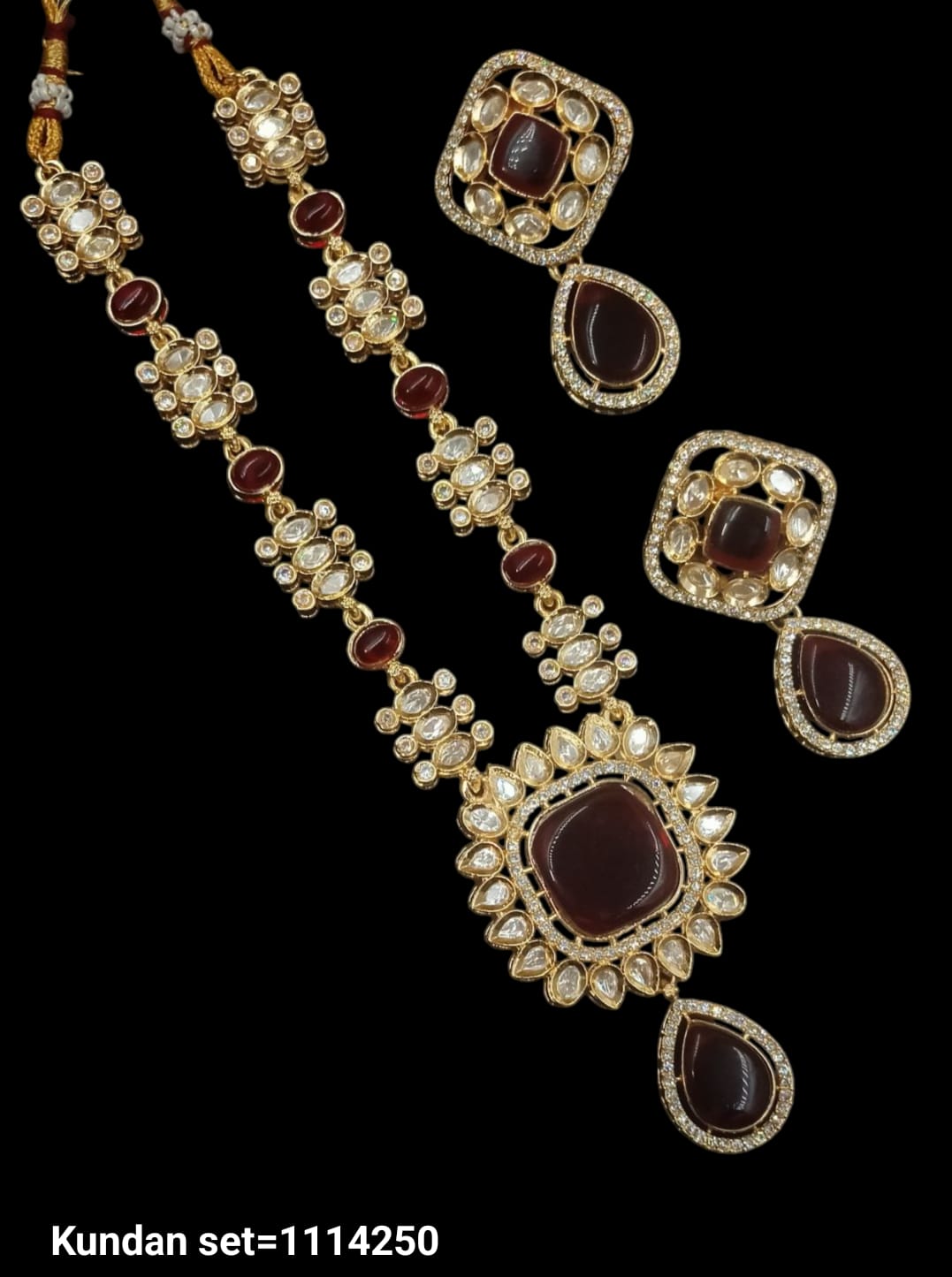 Exquisitely crafted, this necklace set features traditional gold plating combined with intricate Kundan work, embodying timeless elegance and expert craftsmanship.