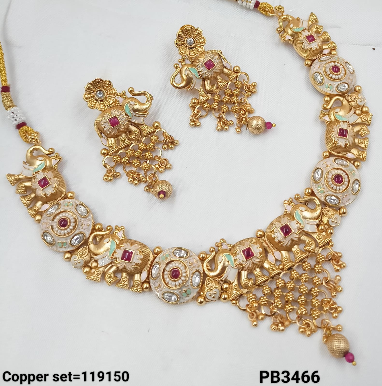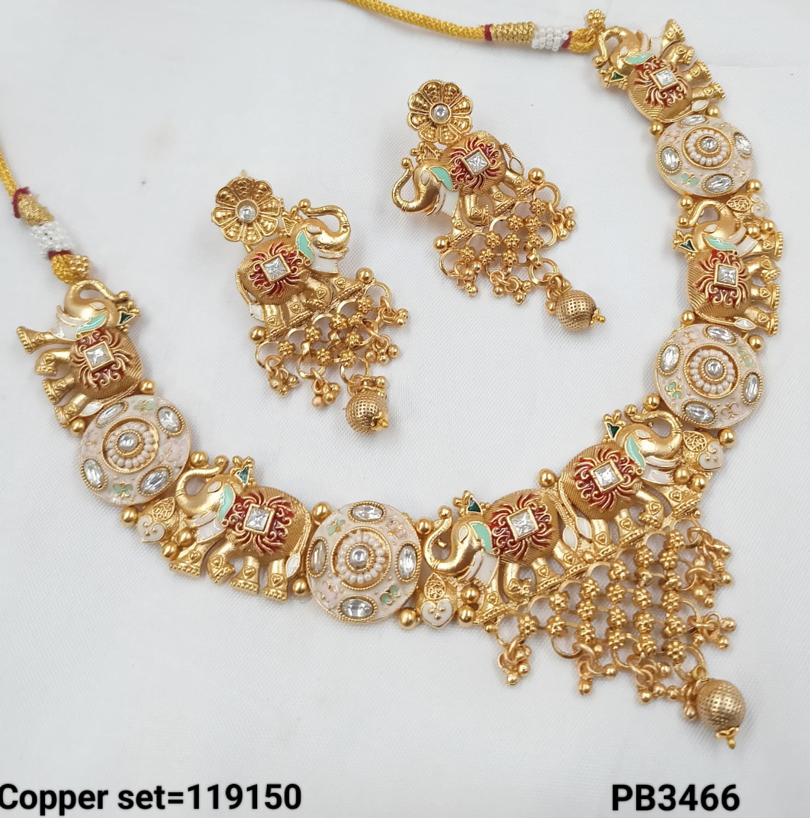 This necklace set features a classic design with a gold-polished finish on copper, embodying traditional elegance.