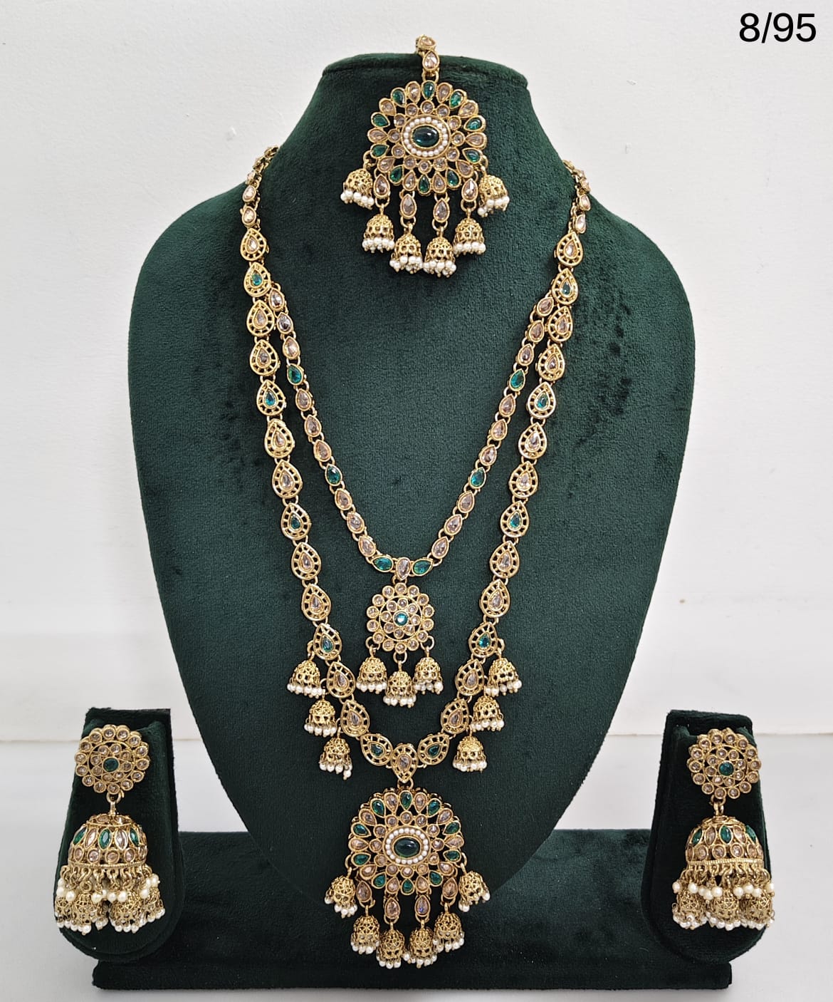 Traditional Kundan Long Necklace Set with Jhumka Earrings and Maang Tikka