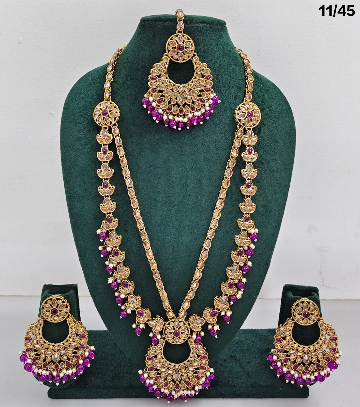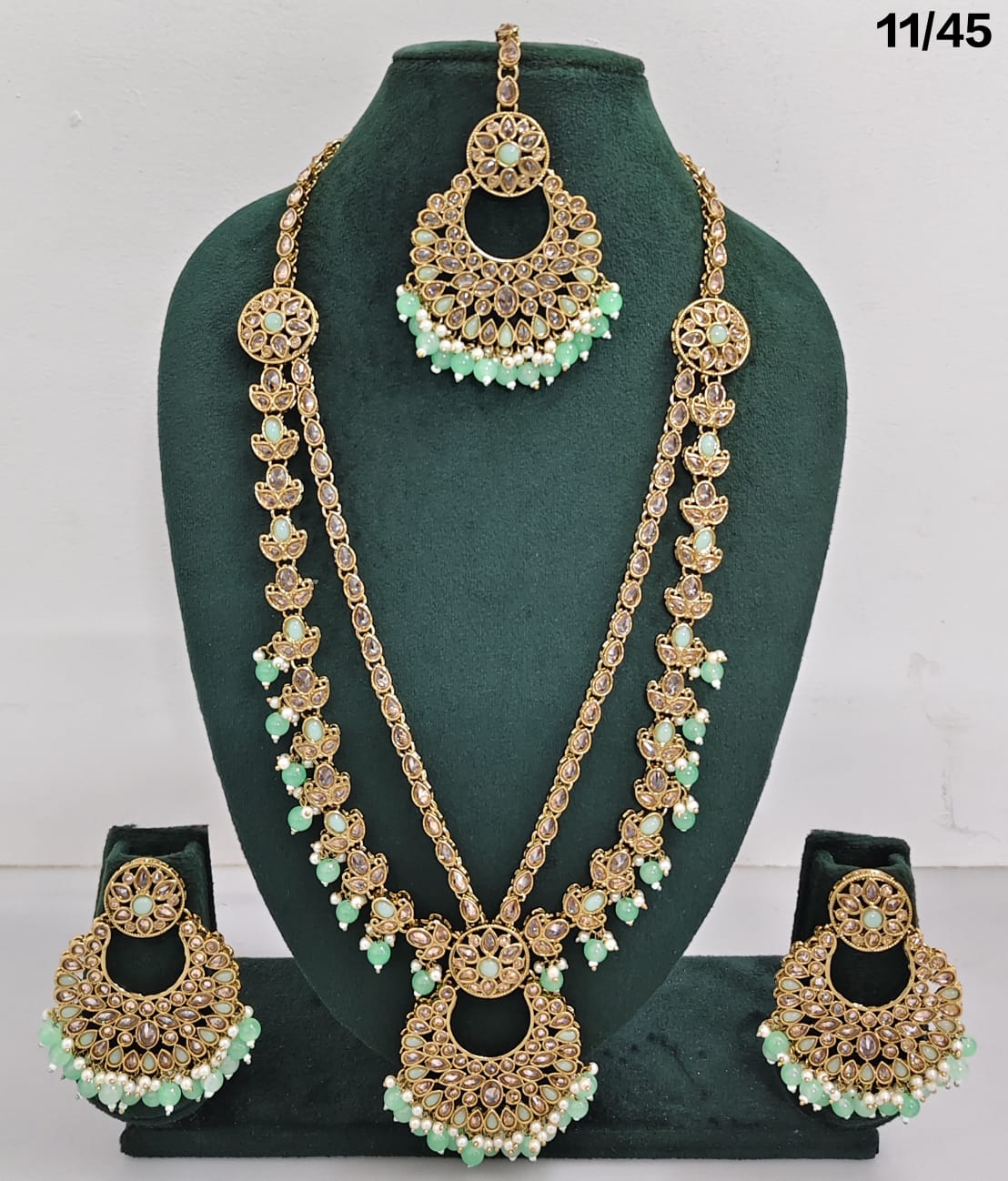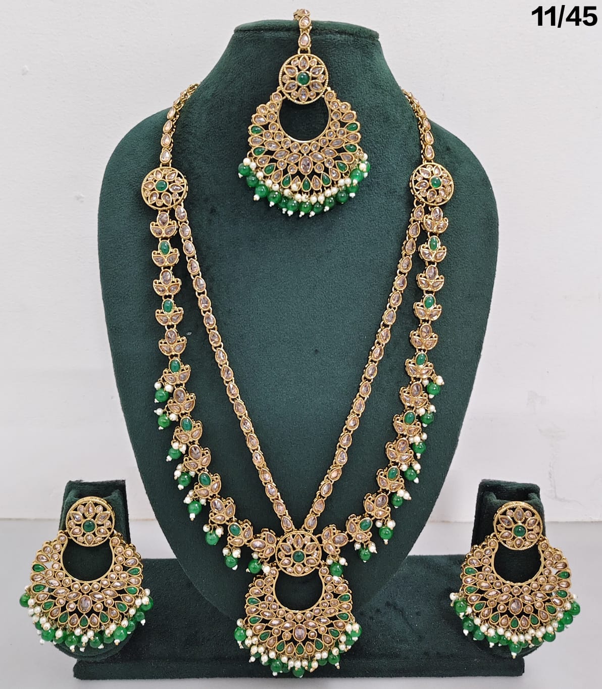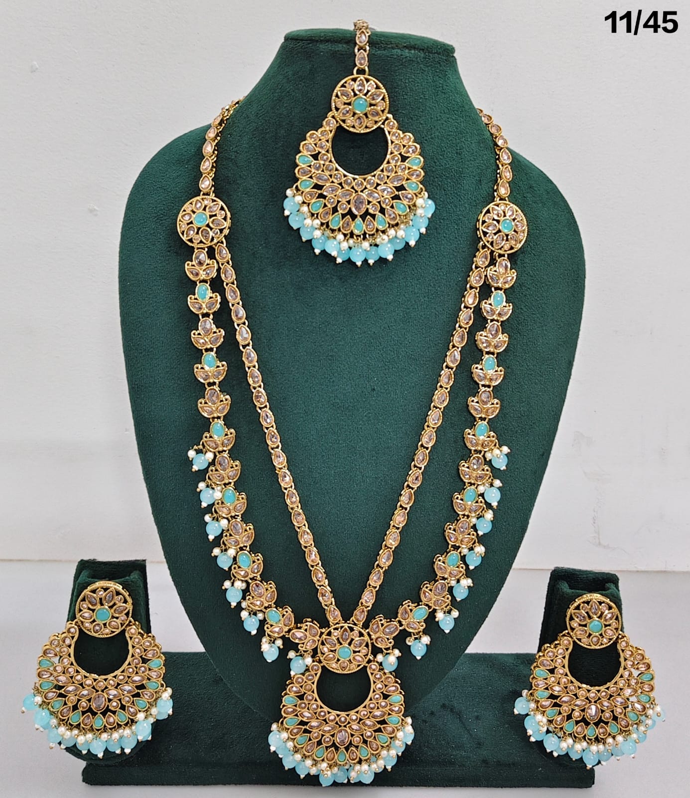 Turn heads at every celebration with this Traditional CZ Long Necklace Set, crafted with timeless elegance and attention to detail. The set features a beautifully patterned long necklace embellished with sparkling CZ stones and finished with delicate beaded drops. The coordinated earrings mirror the same intricate design, adding balance and charm to your overall look. Ideal for weddings, festive events, or cultural gatherings, this set perfectly blends traditional aesthetics with contemporary elegance.