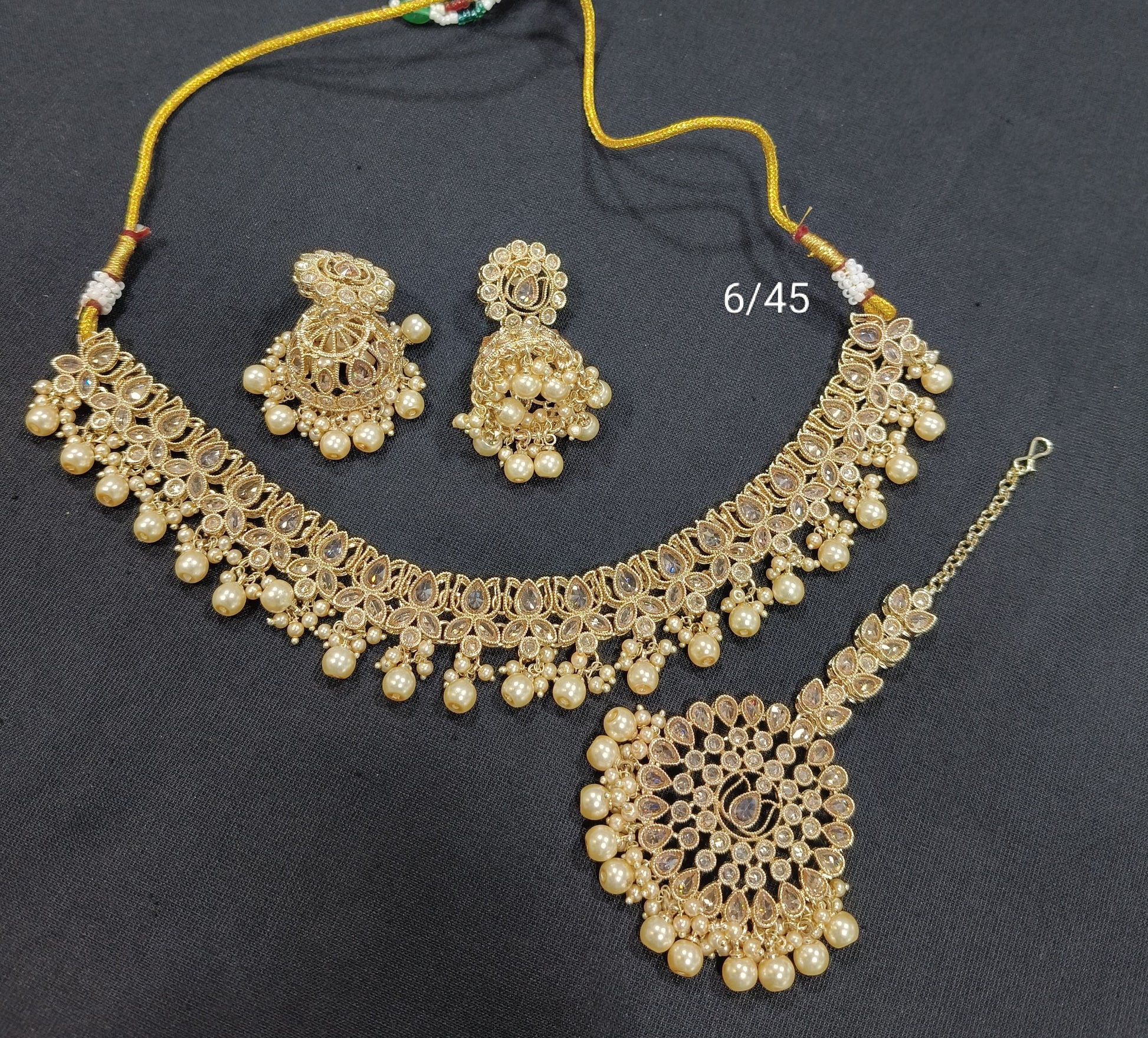 Set Includes: Choker necklace and matching stud earrings & Maangtika
