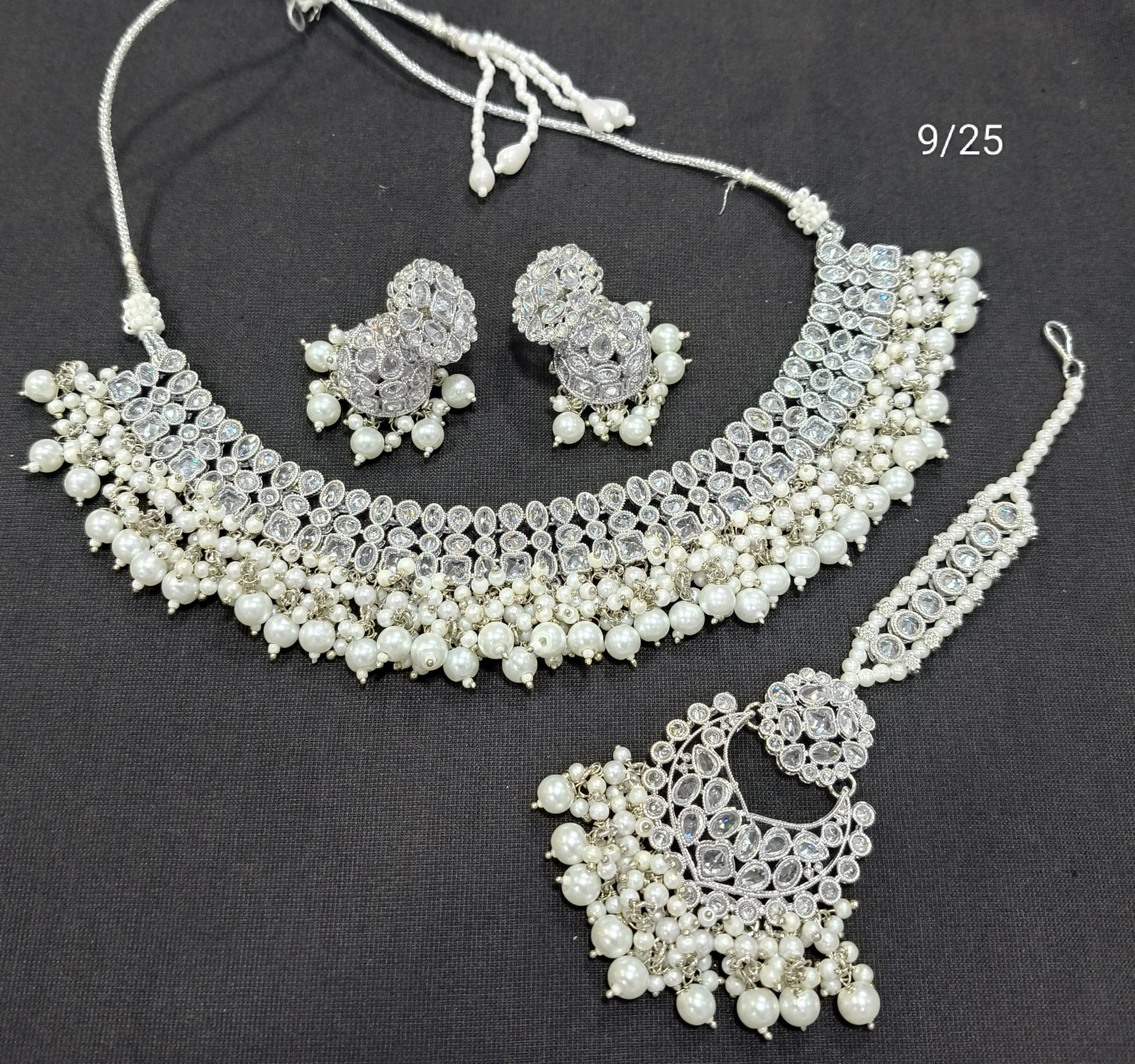 Traditional Pearl Cluster Silver Plated Choker Necklace Set – Bridal & Festive Wear