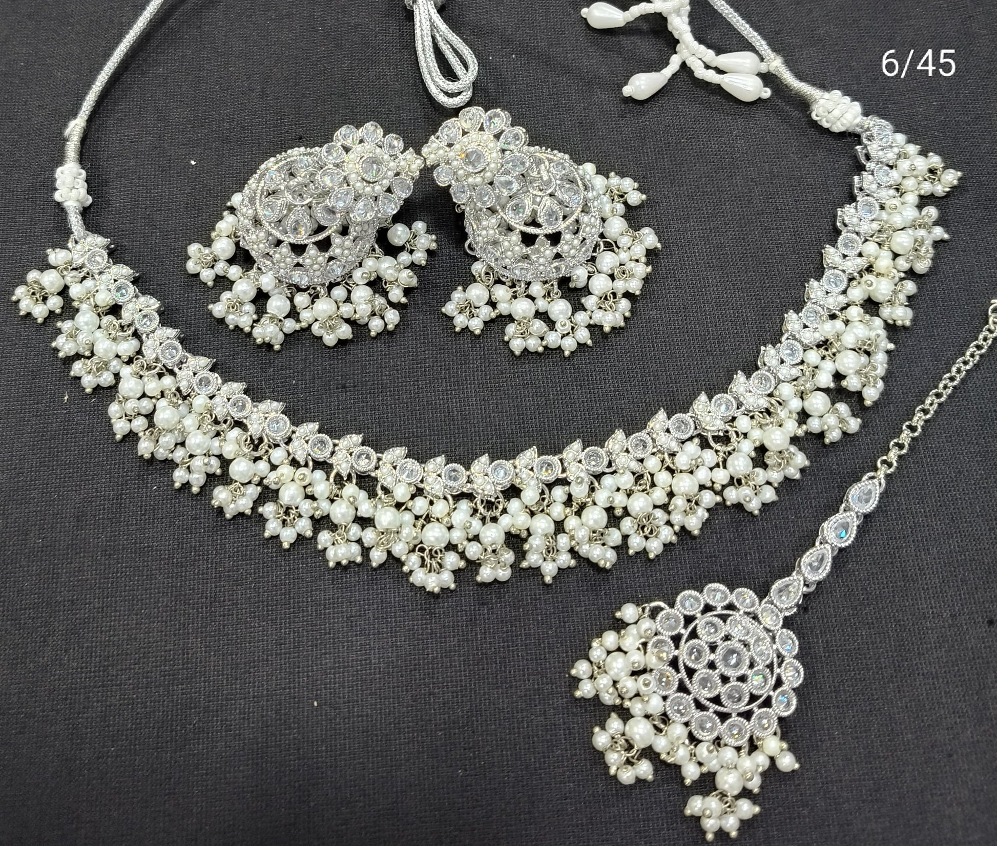 Traditional Pearl Drop Designer Choker Necklace Set for Women