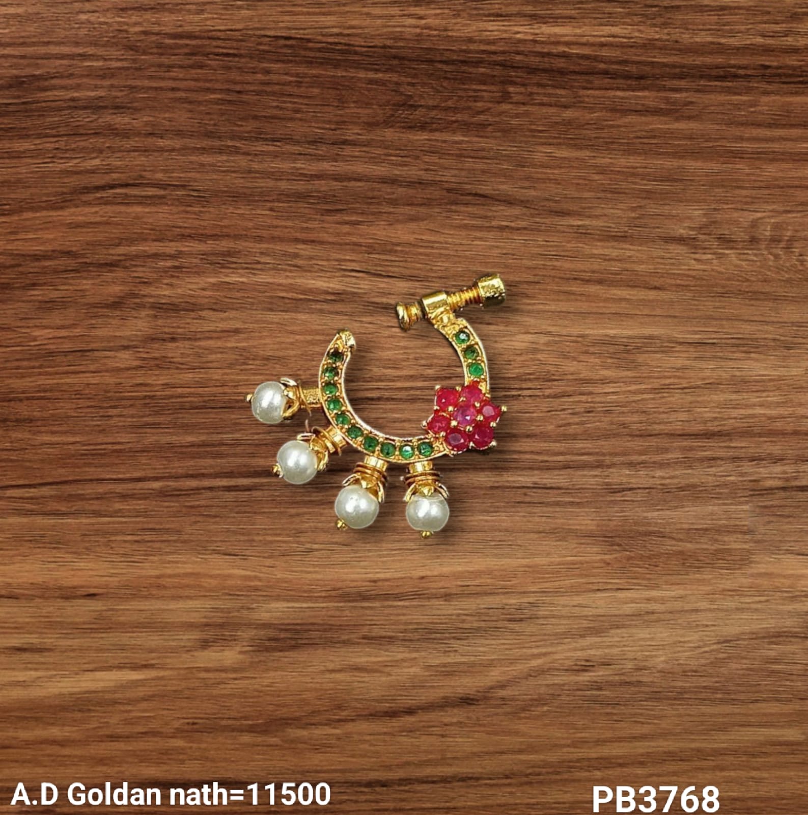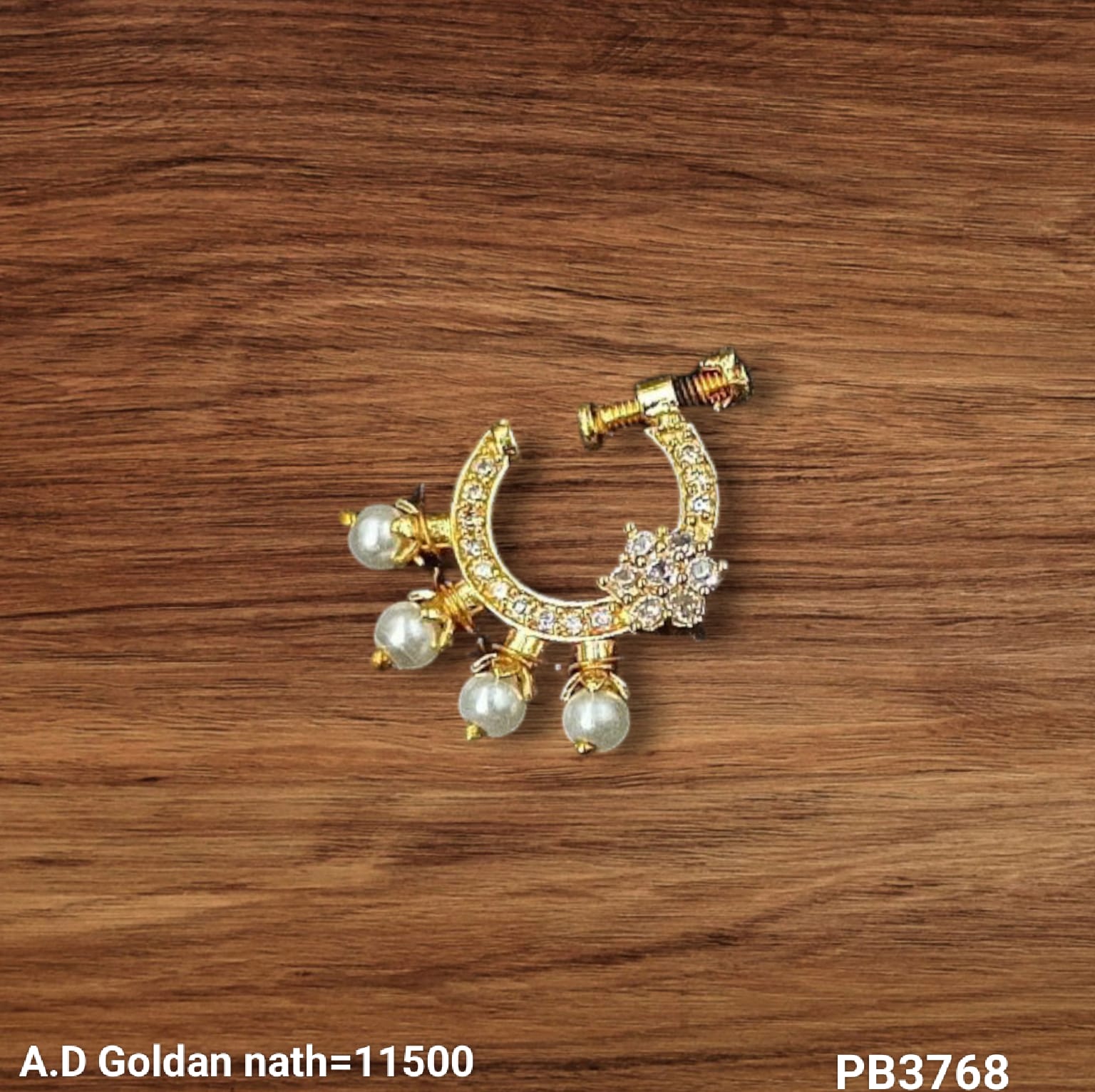 This elegant nose pin features a traditional design with a refined gold-plated finish, combining classic style with expert craftsmanship.