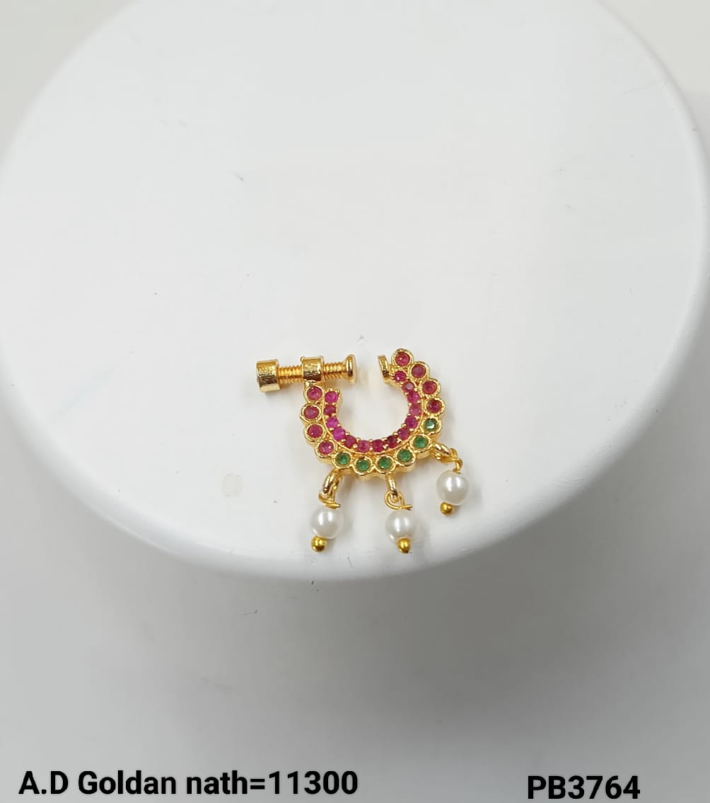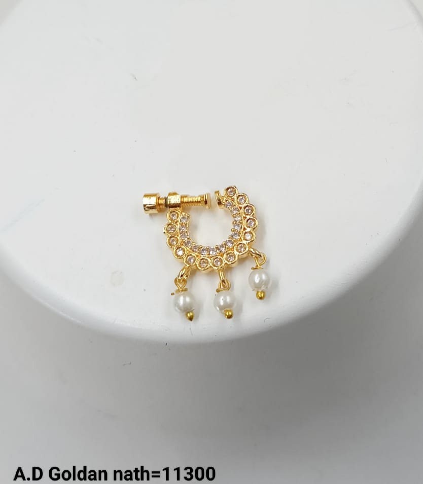 Traditional Stylish Pearl Gold Plated Nose Pin
